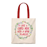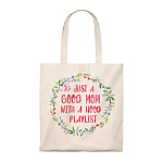 Just A Good Mom With A Hood Playlist Flower Vintage Canvas Tote Bag - Shoulder Bag - Reusable Grocery Shopping Bag