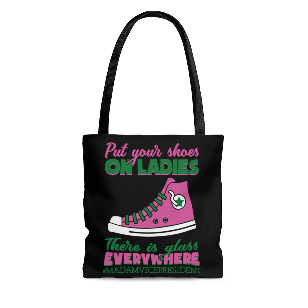 Let’s Shop Kamala Harris Put Your Shoes on Ladies There Are Glass Everywhere Aka Sorority 1908 All Over Print Tote Bag – Shoulder Bag!