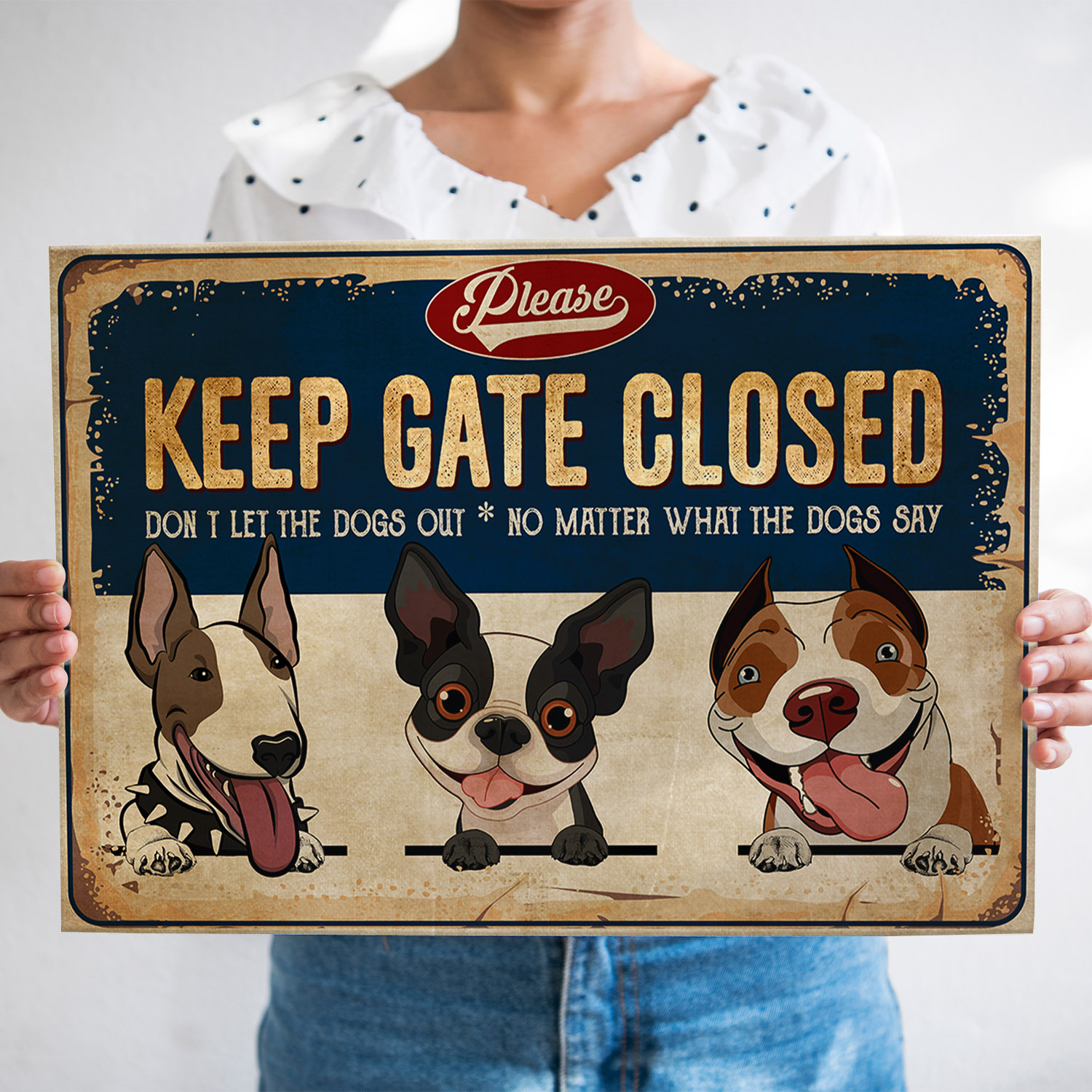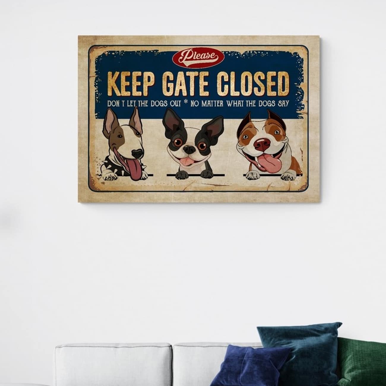 Let’s Shop Please Keep Gate Closed Don’t Let the Dogs Out No Matter What Funny Dogs Wrapped Framed Canvas Prints – Unframed Poster!