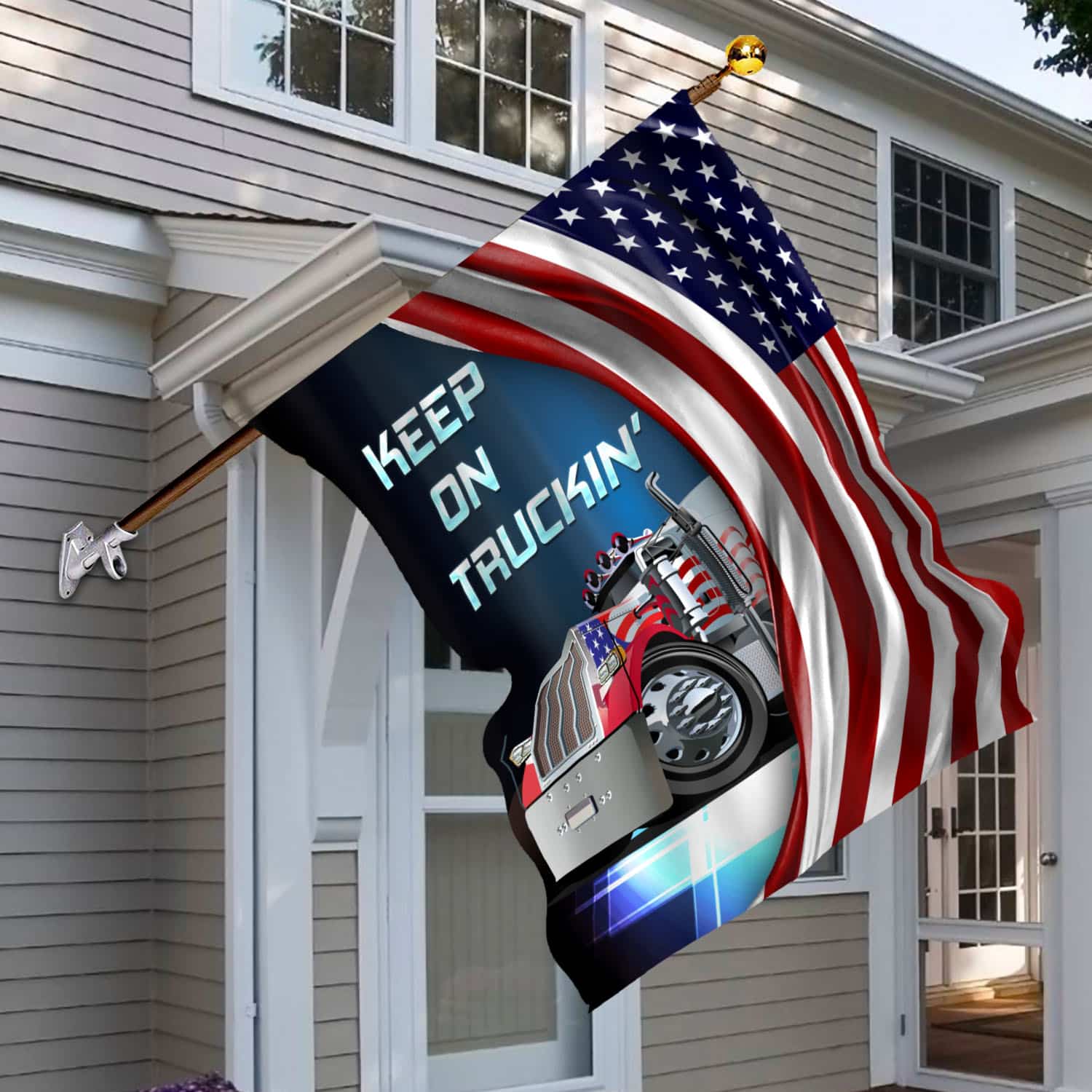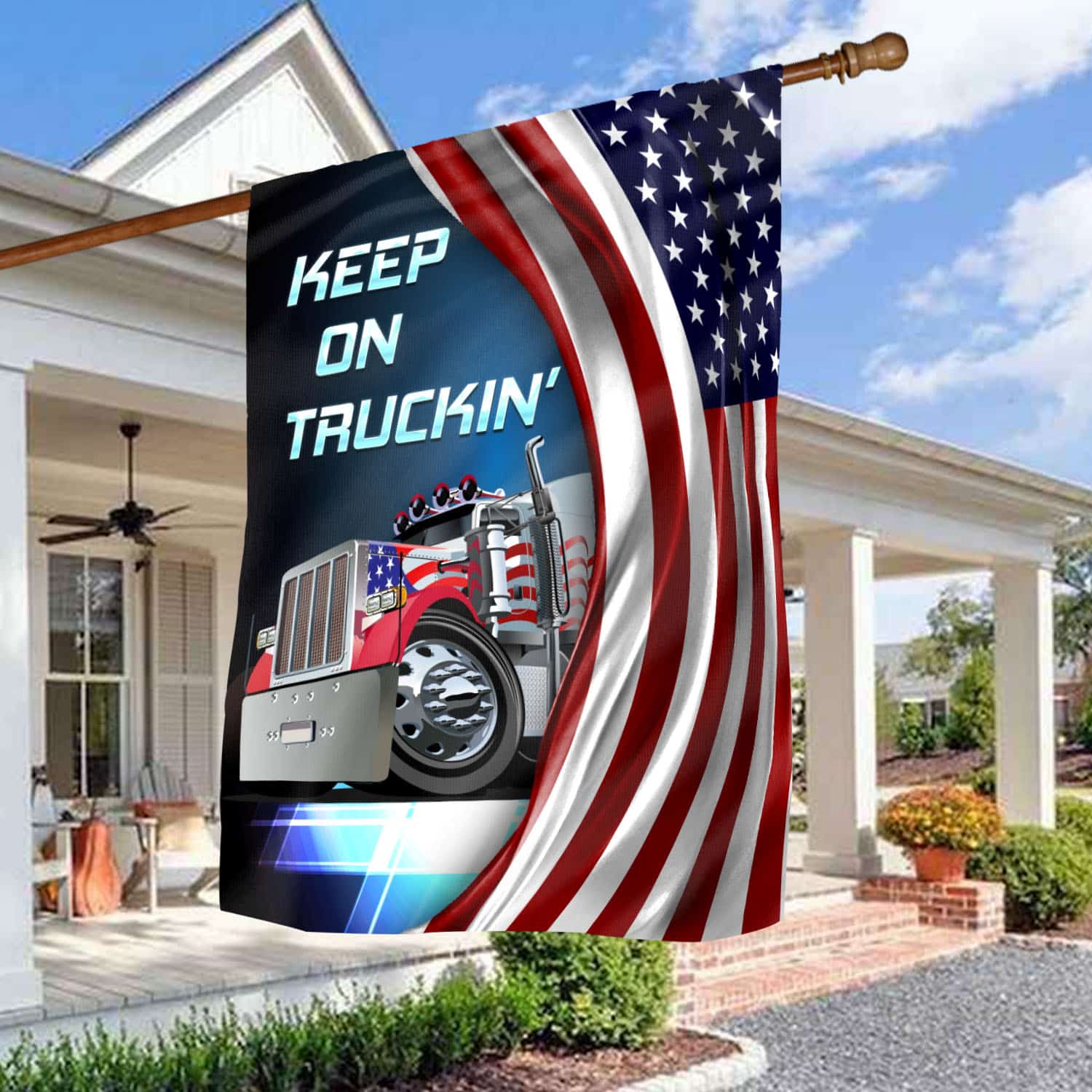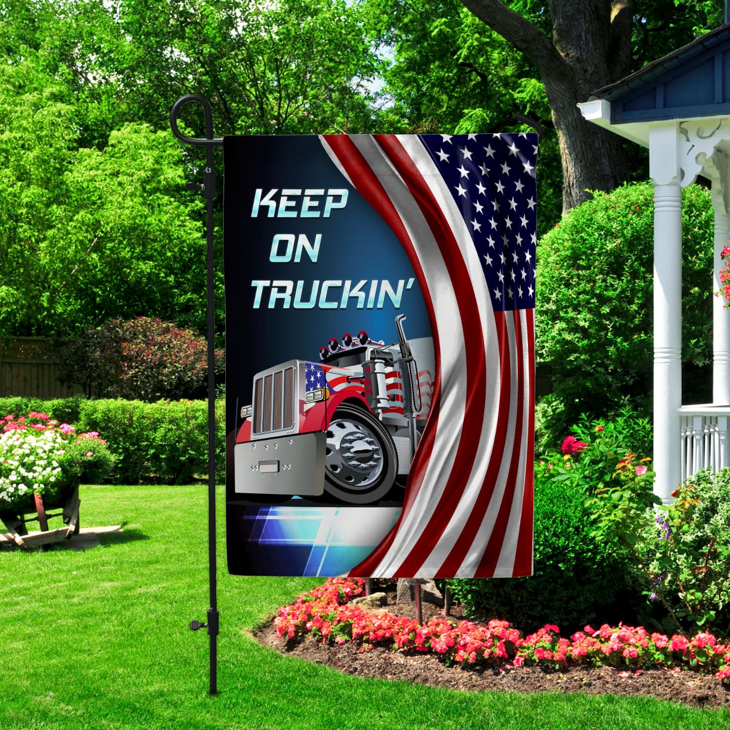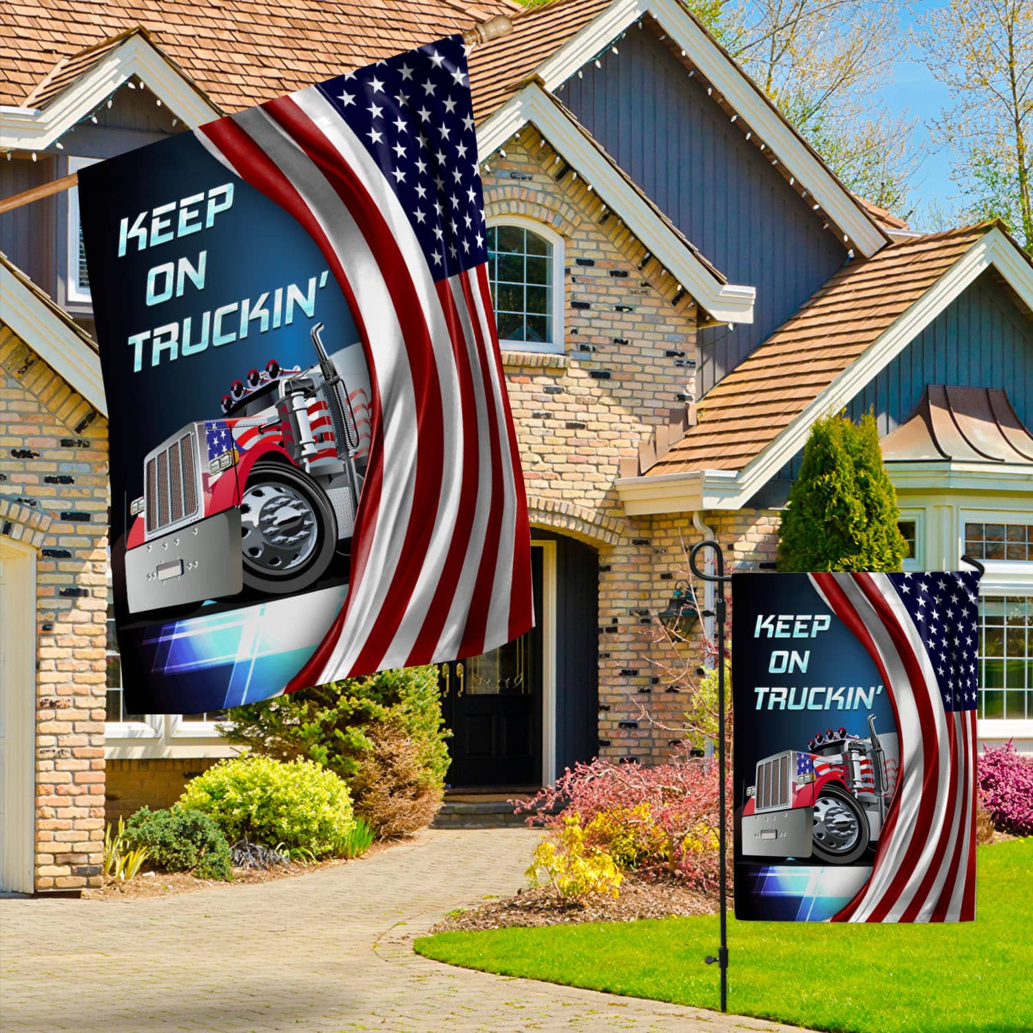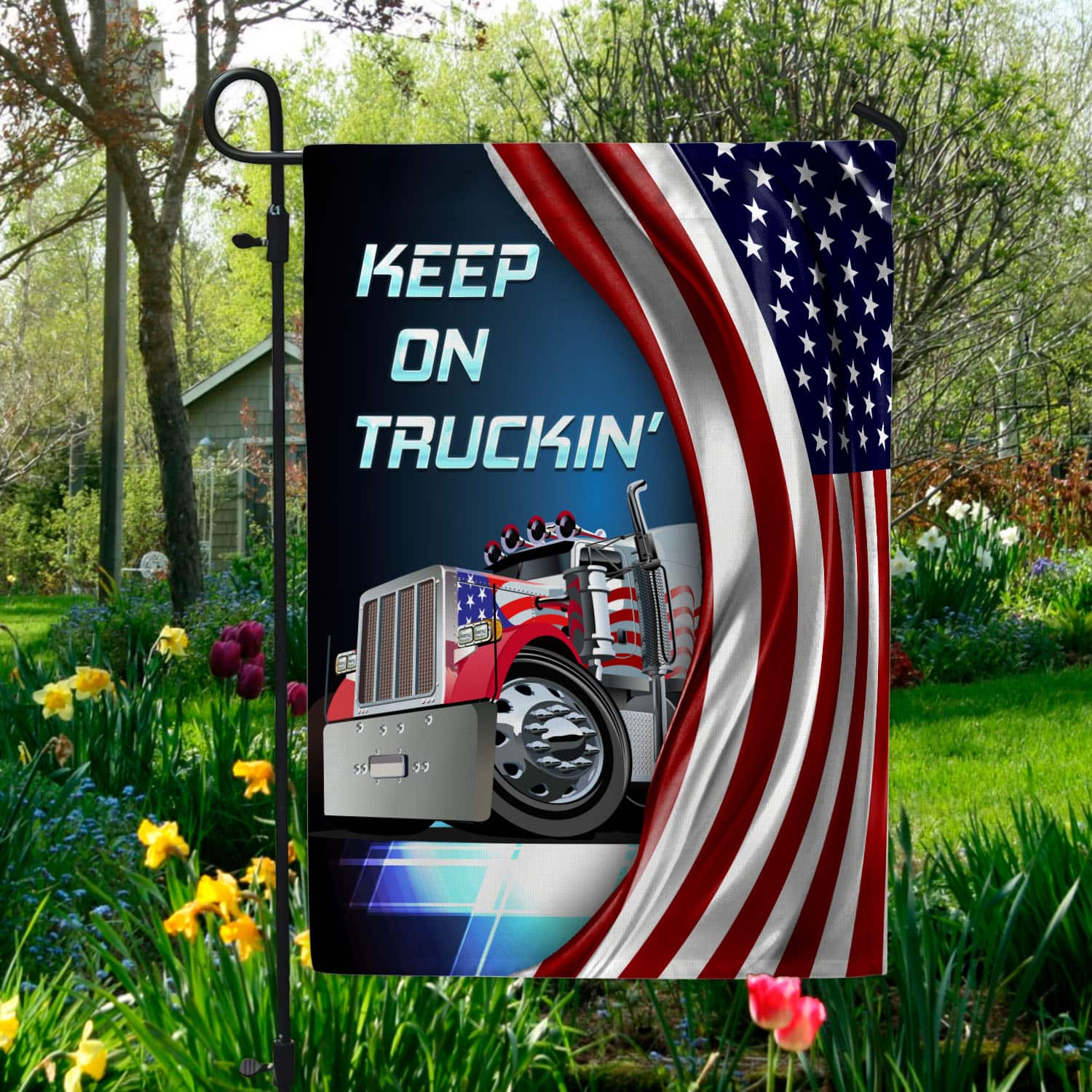 Let’s Shop Keep On Truckin’ American Outdoor House Flag – Trucker Home Garden Flag – Trucker Home Decorations!