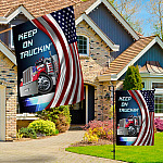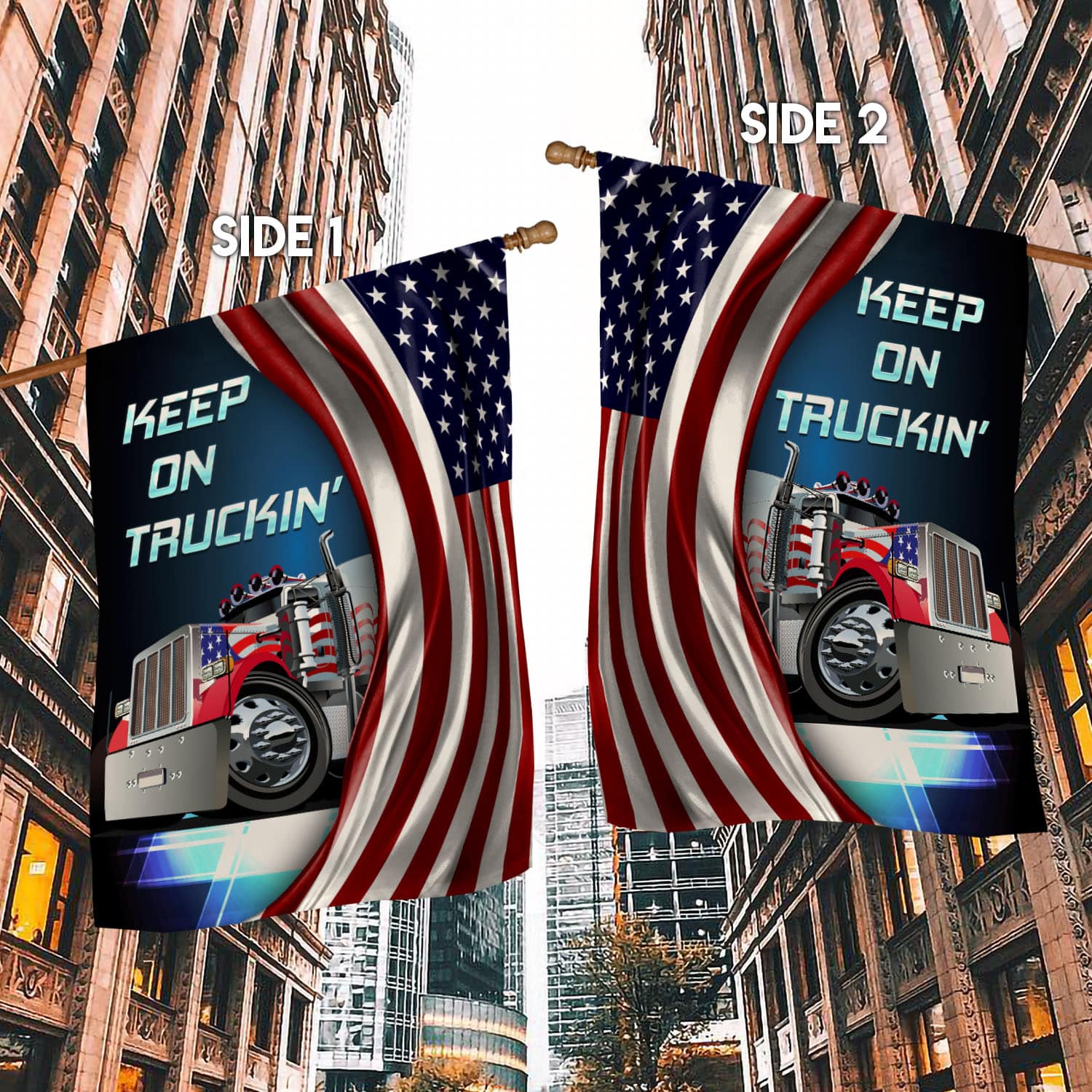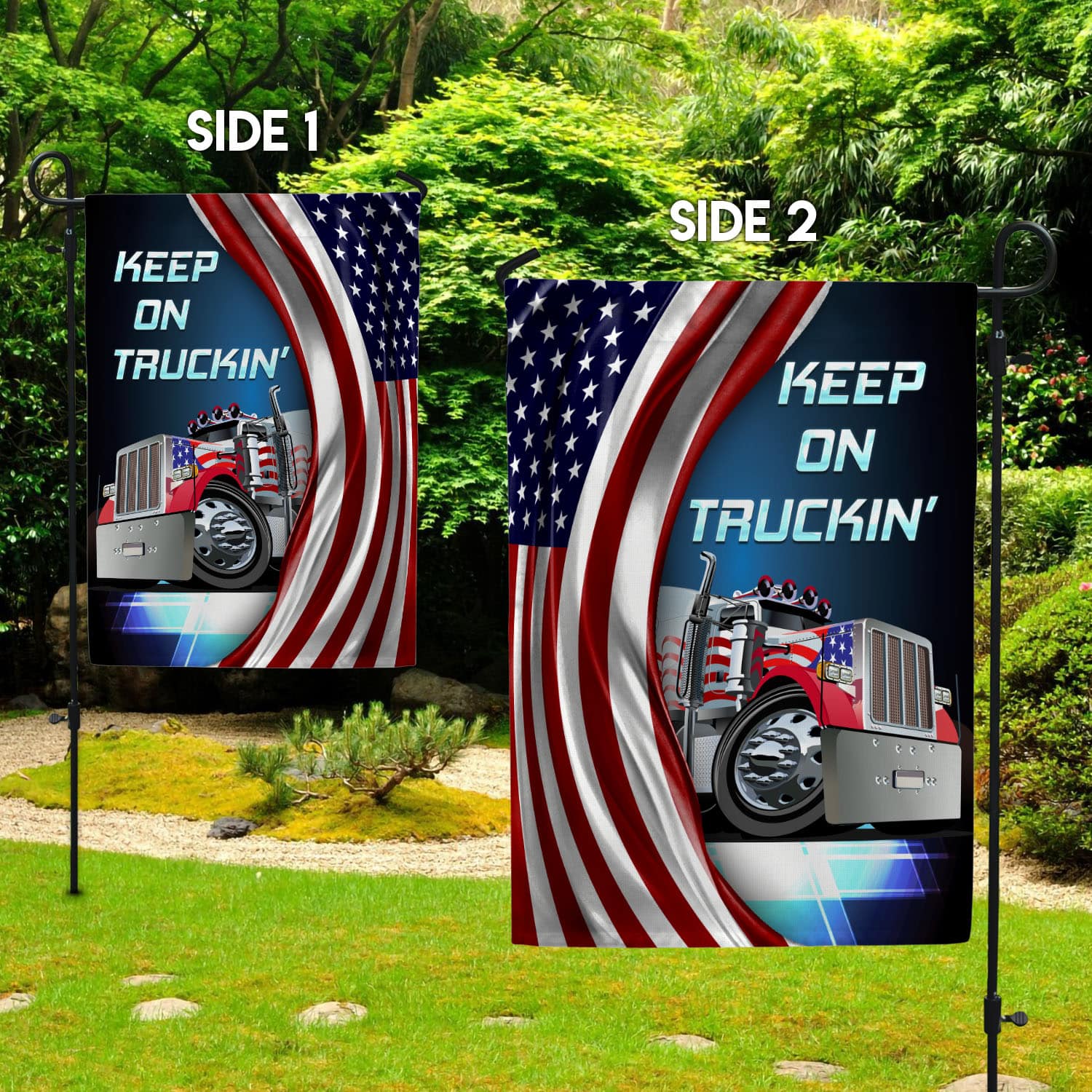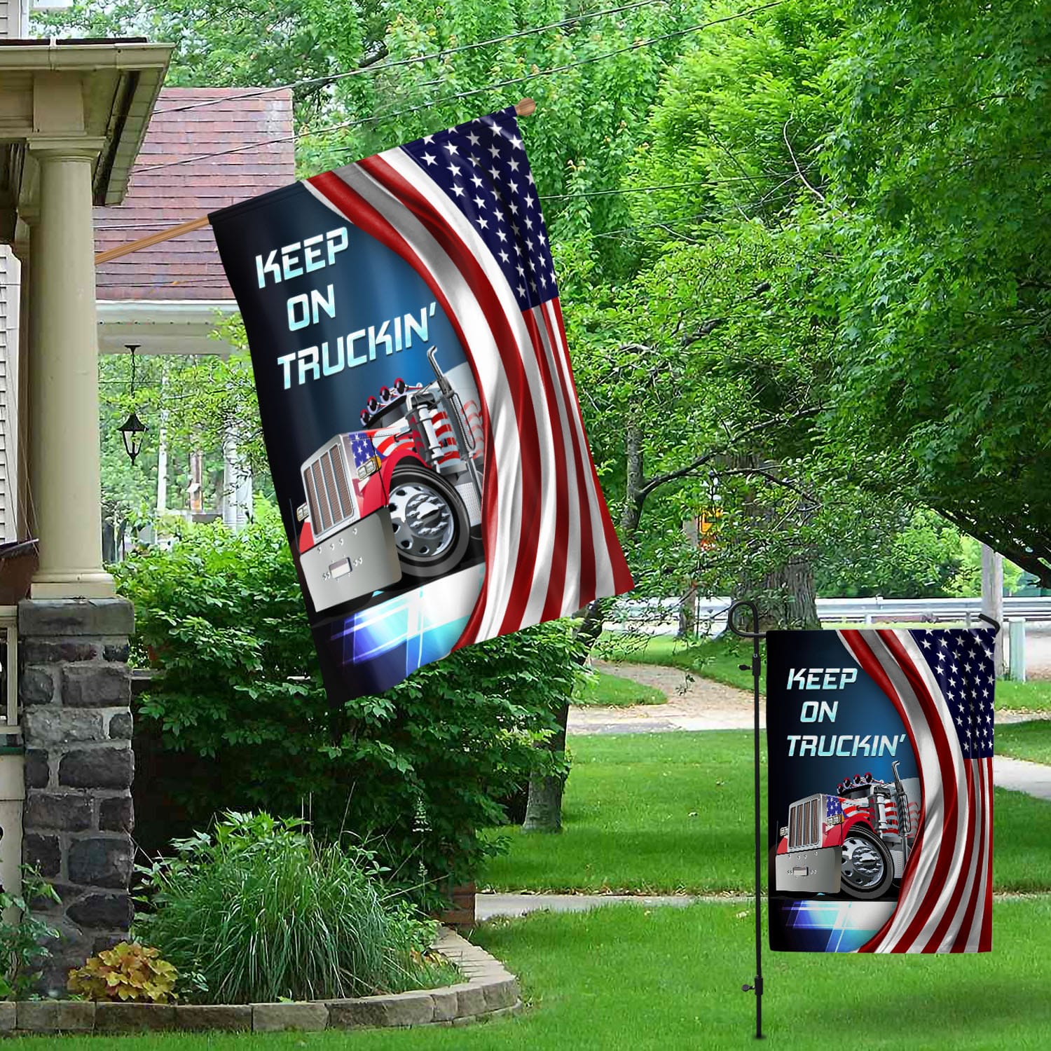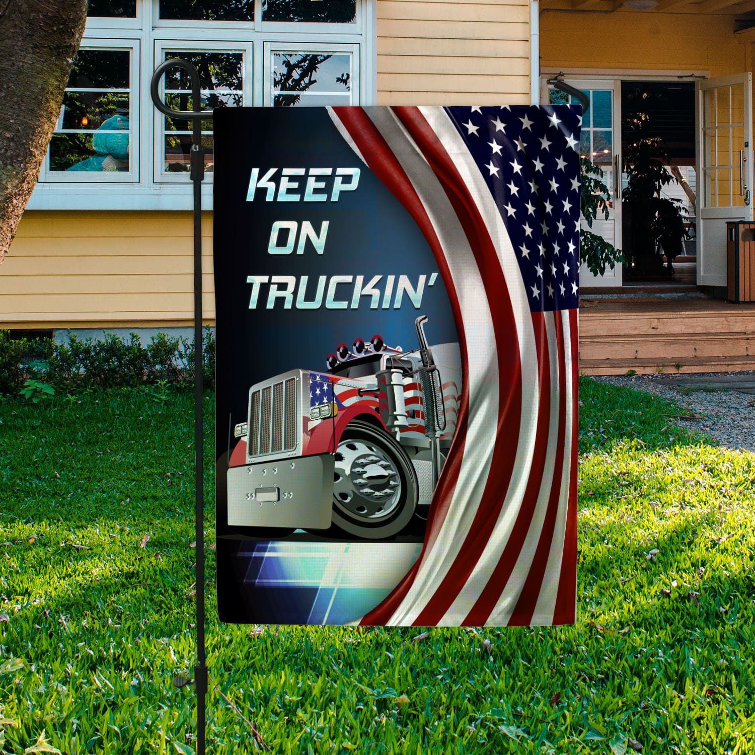 Let’s Shop Keep On Truckin’ American Outdoor House Flag – Trucker Home Garden Flag – Trucker Home Decorations!