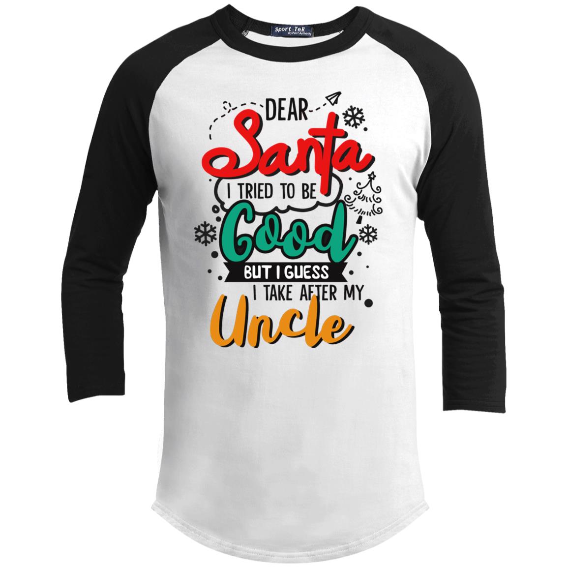 Shop Dear Santa I Tried To Be Good But I Guess I Take After My Uncle 3/4 Raglan Jersey Shirt – Baseball Tee – Youth Shirt.
