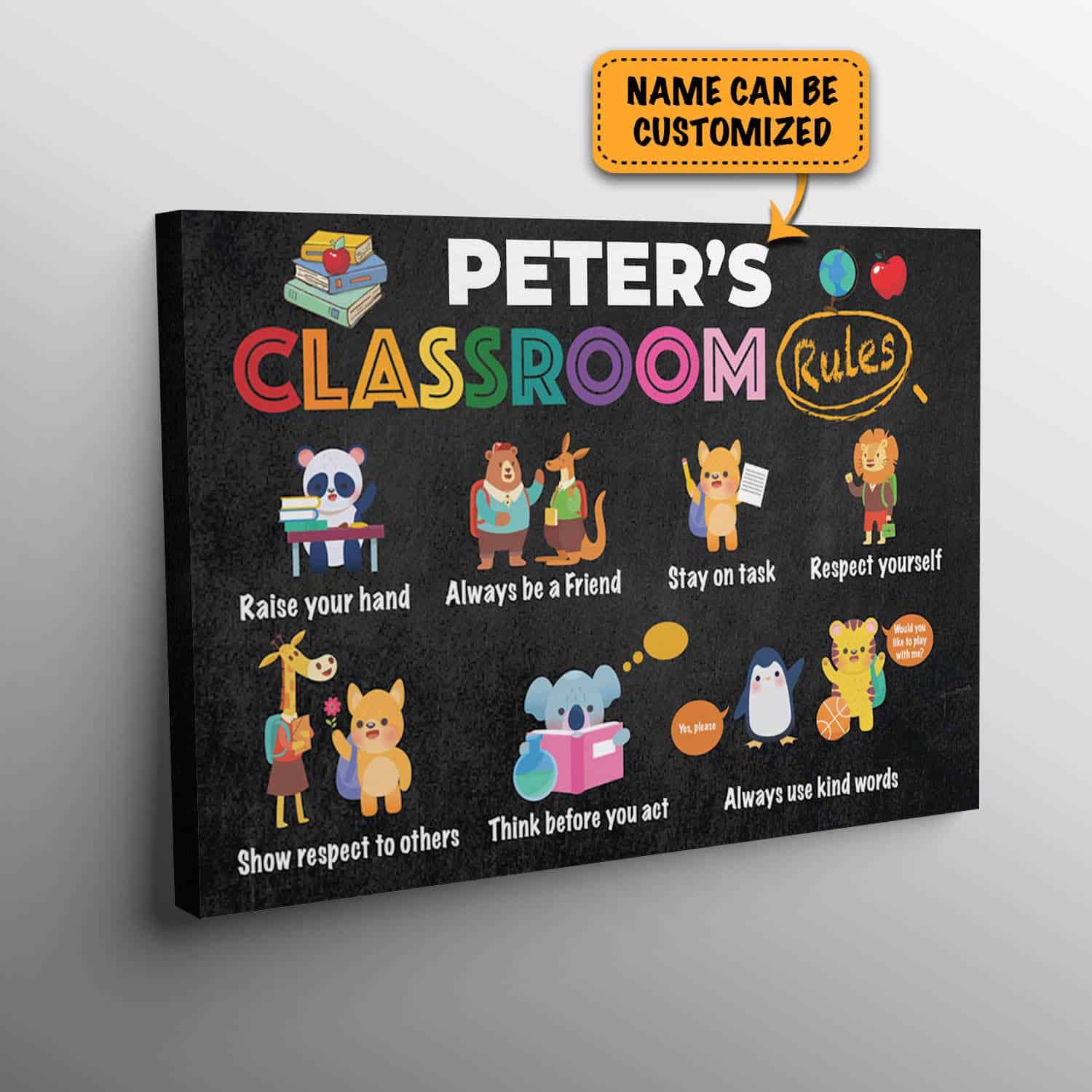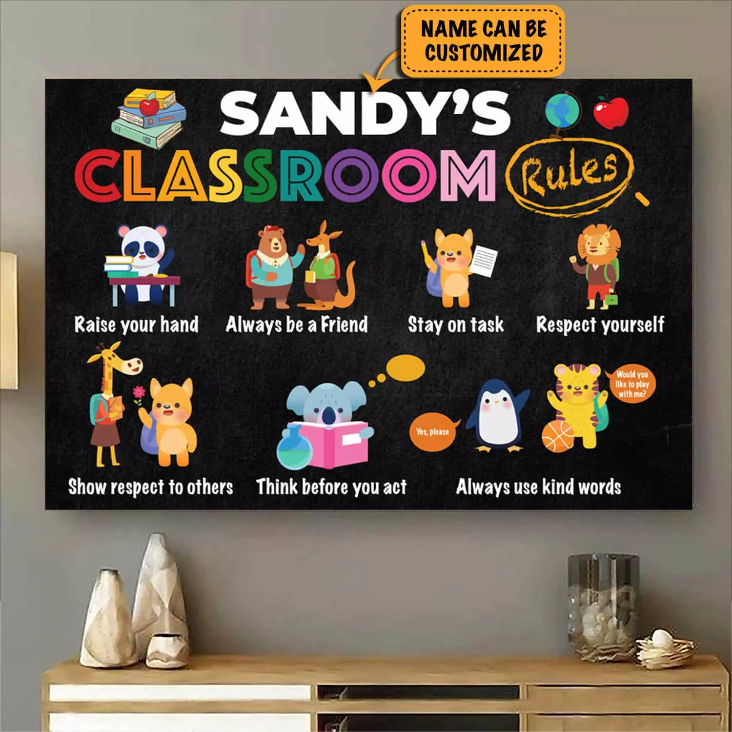 Let’s Shop Personalized Classroom Rules Raise Your Hands Always Be A Friend Stay On Task Framed Canvas Prints – Unframed Poster!