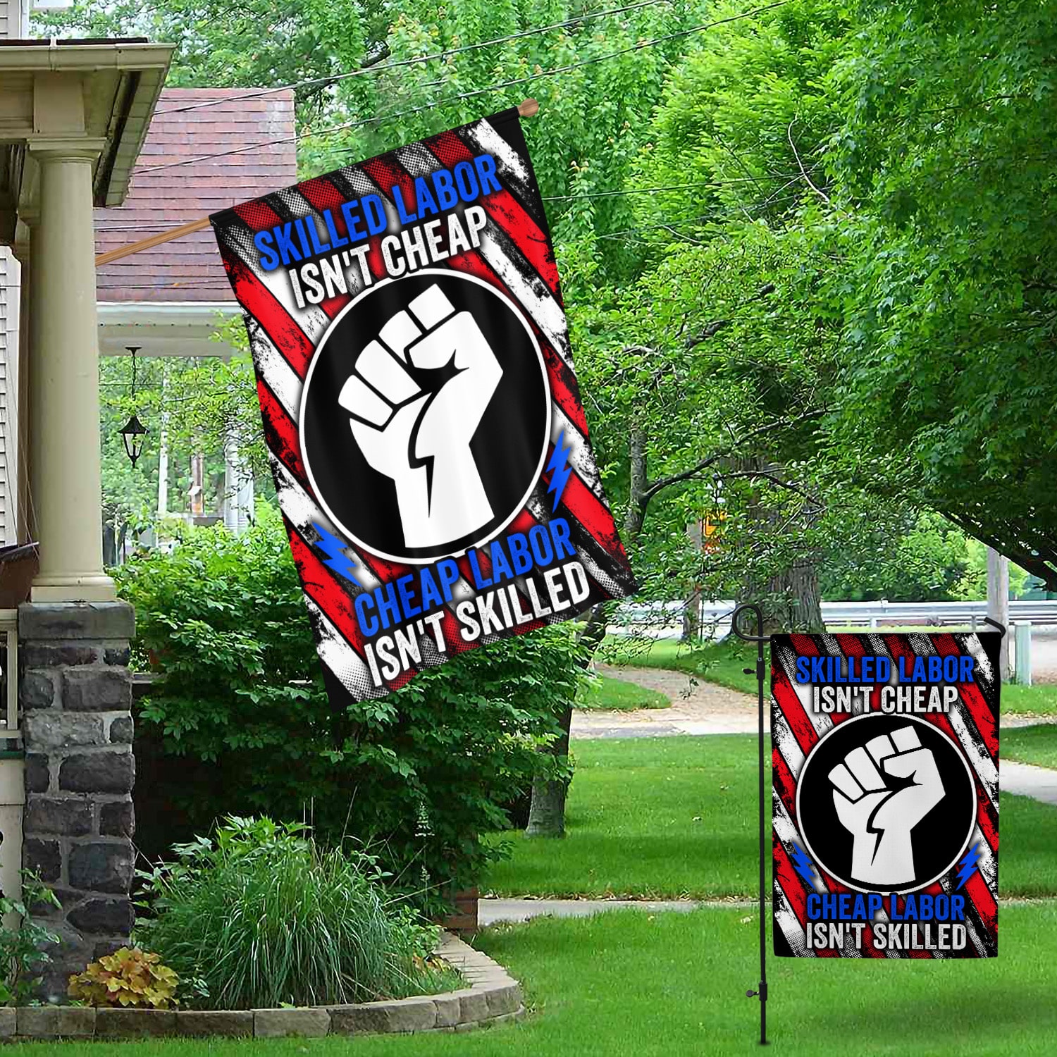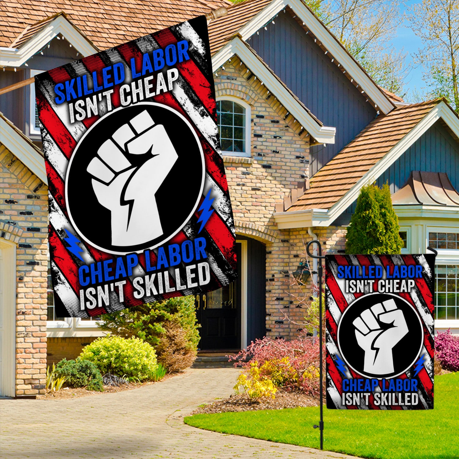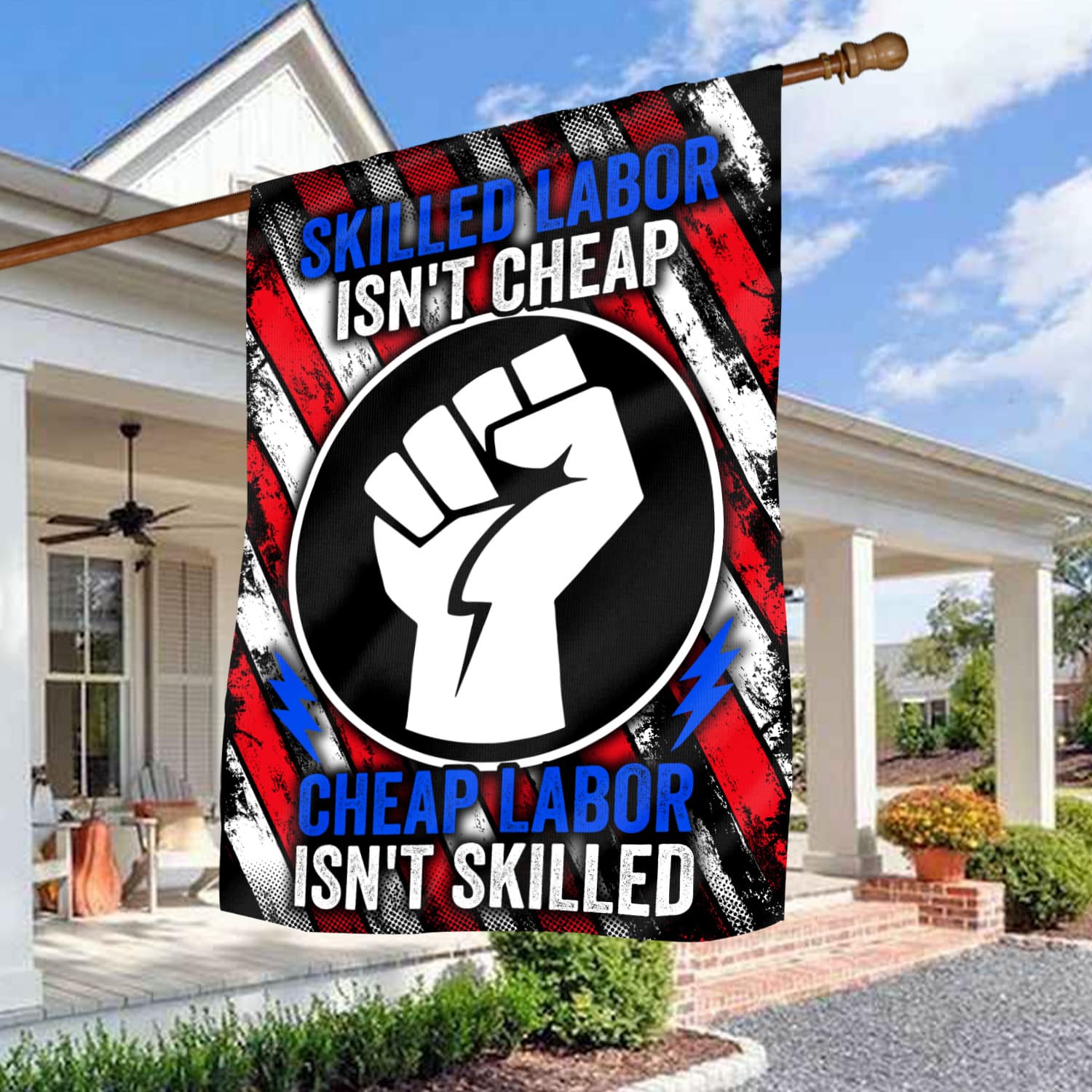 Let’s Shop American Flag Skilled Labor Isn’t Cheap Cheap Labor Isn’t Skilled House Flag – Happy Labor Day Outdoor Garden Flag!