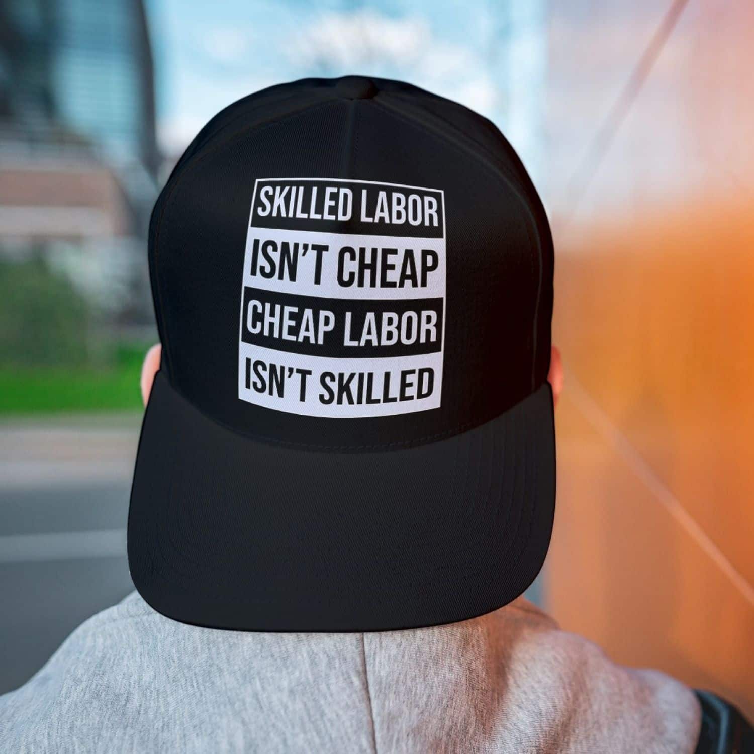Let’s Shop Skilled Labor Isn’t Cheap and Cheap Labor Isn’t Skilled Labor Twill Cap – High-Profile Snapback Hat – Trucker Hat!