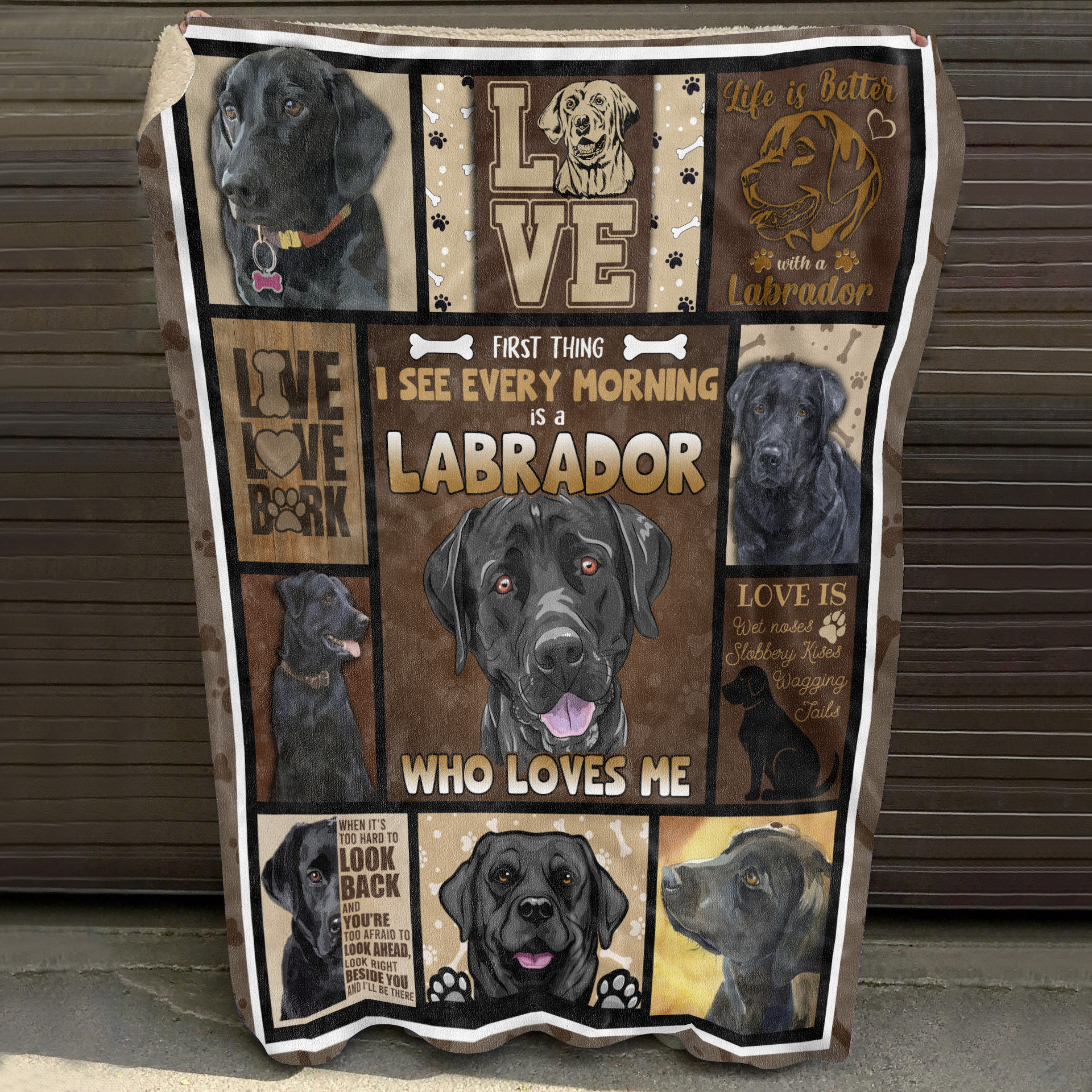 Let’s Shop First Thing I See Every Morning Is a Labrador Who Loves Me Black Labrador Fleece Blanket – Mink Blanket!
