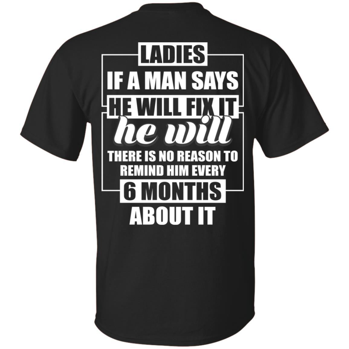 Ladies If A Man Says He Will Fix It He Will T-Shirt – Sarcasm Shirt For Men