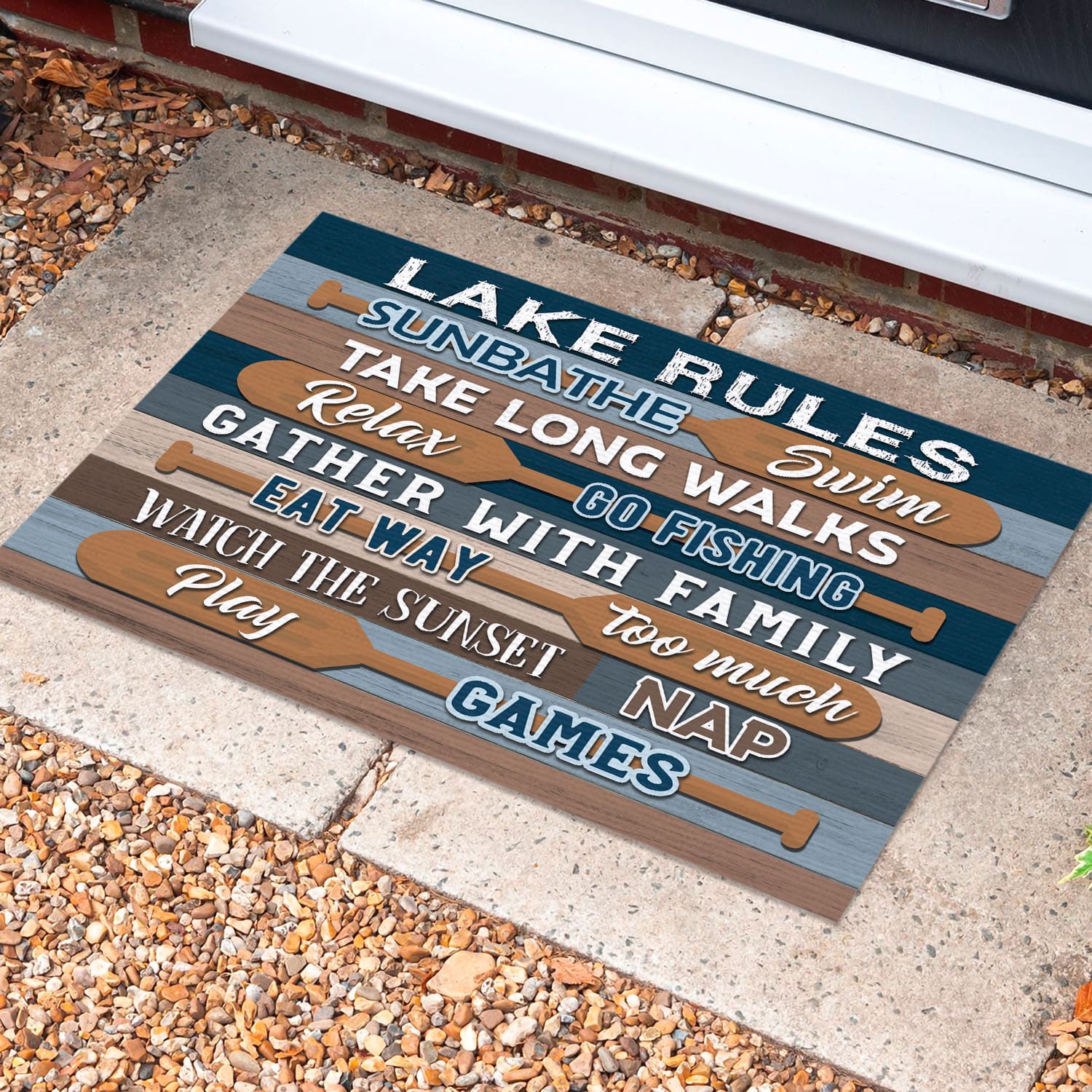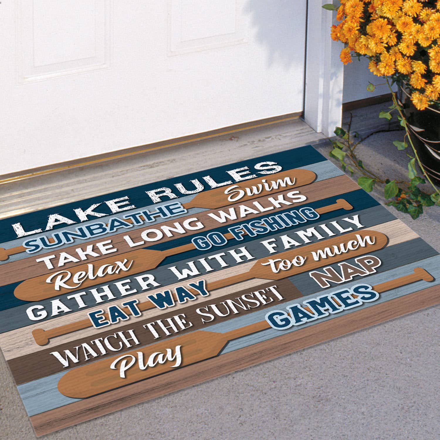 Let’s Shop Lake Rules Sunbathe Swim Take Long Walks Relax Go Fishing Doormat – Outdoor Indoor Doormat!