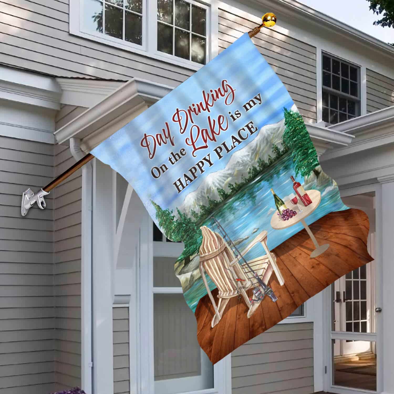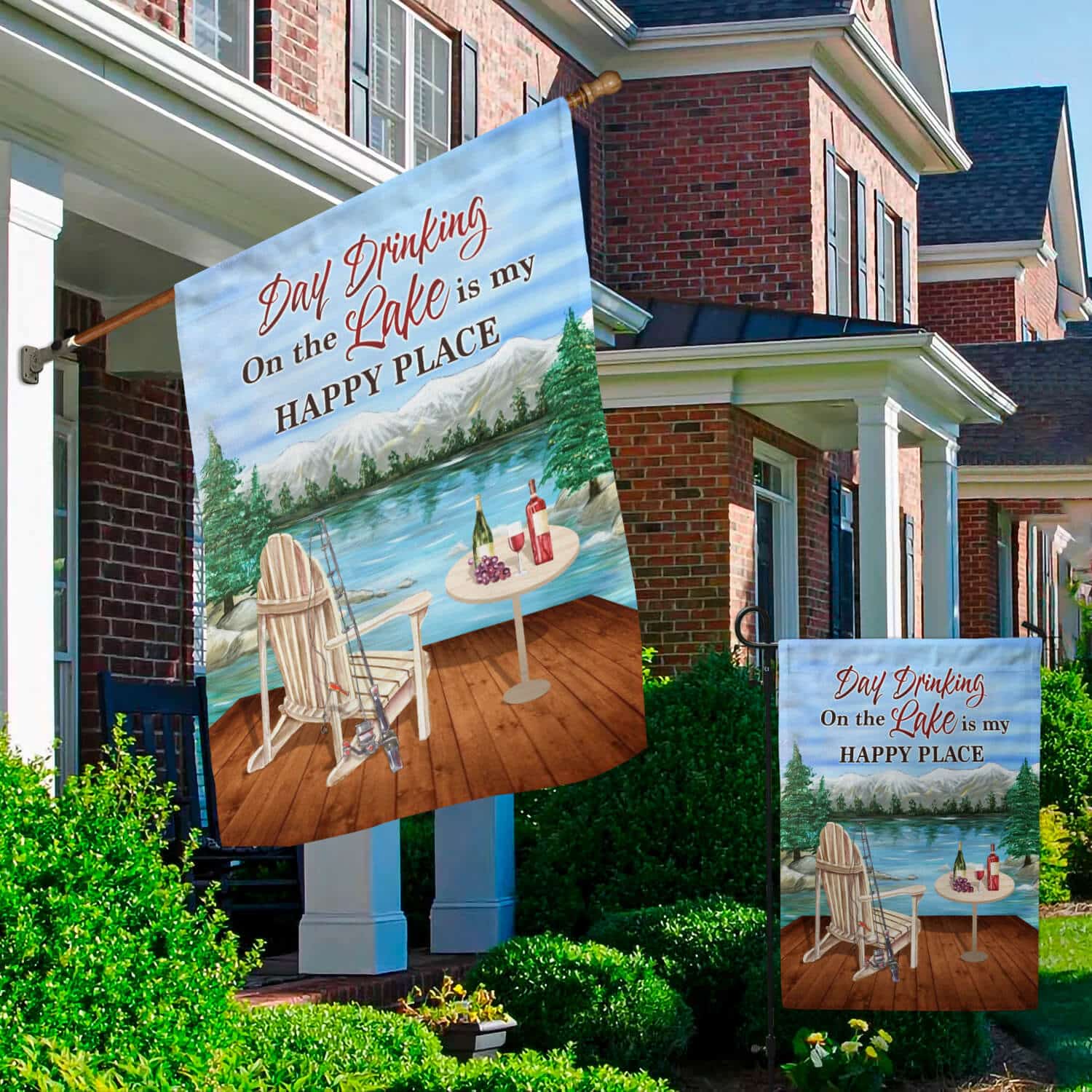 Let’s Shop Day Drinking On The Lake Is My Happy Place Garden Flag – House Flag – Wall Flag!