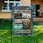 Let’s Shop Lake Rules Slogan Go Fishing Make Memories Garden Flag – Jump Off the Dock House Flag – Wall Flag!