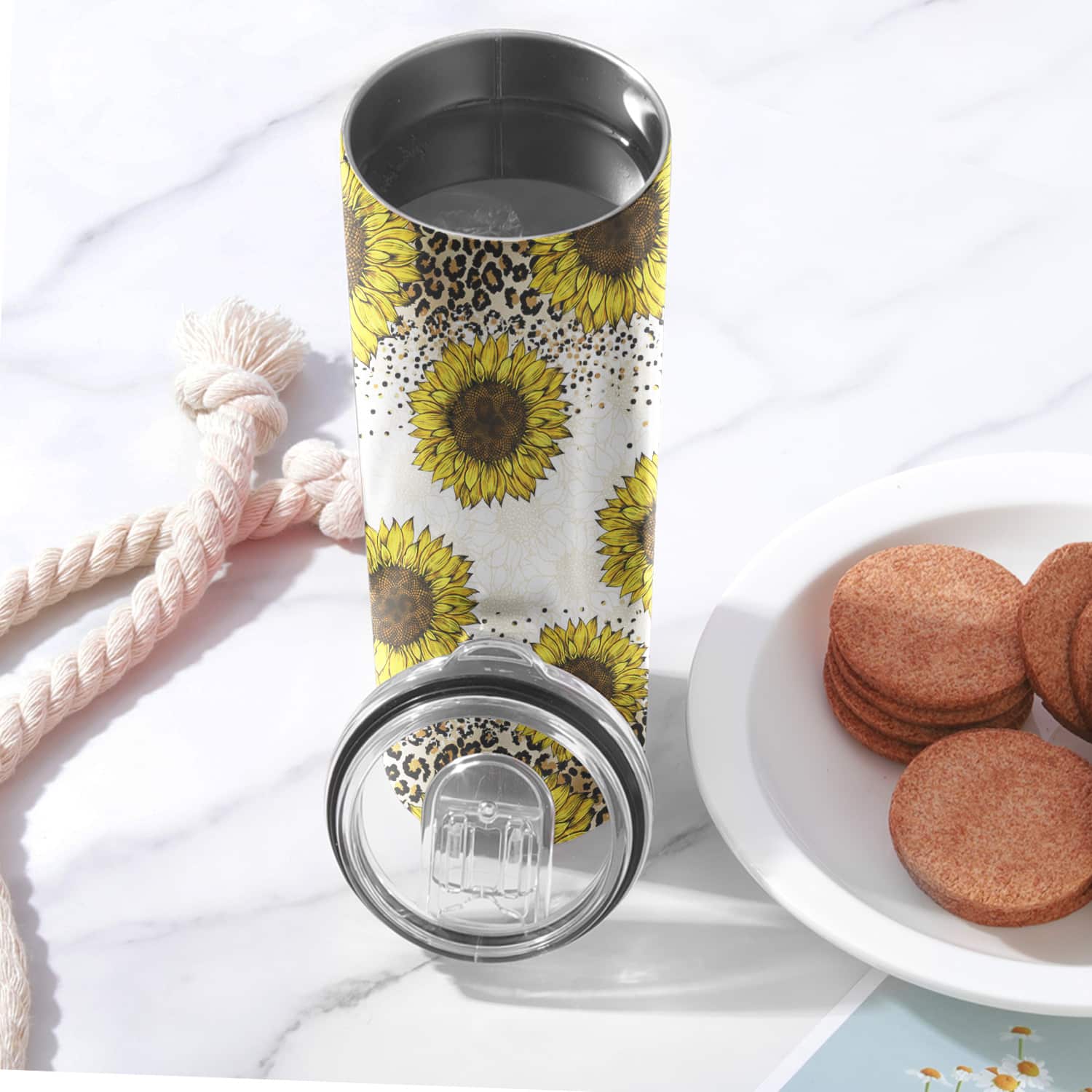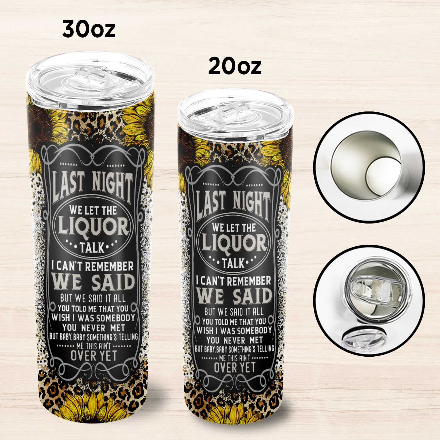 Let’s Shop Last Night We Let The Liquor Talk Skinny Tumbler Cup With Lid and Straw – Leopard Sunflowers Designs!