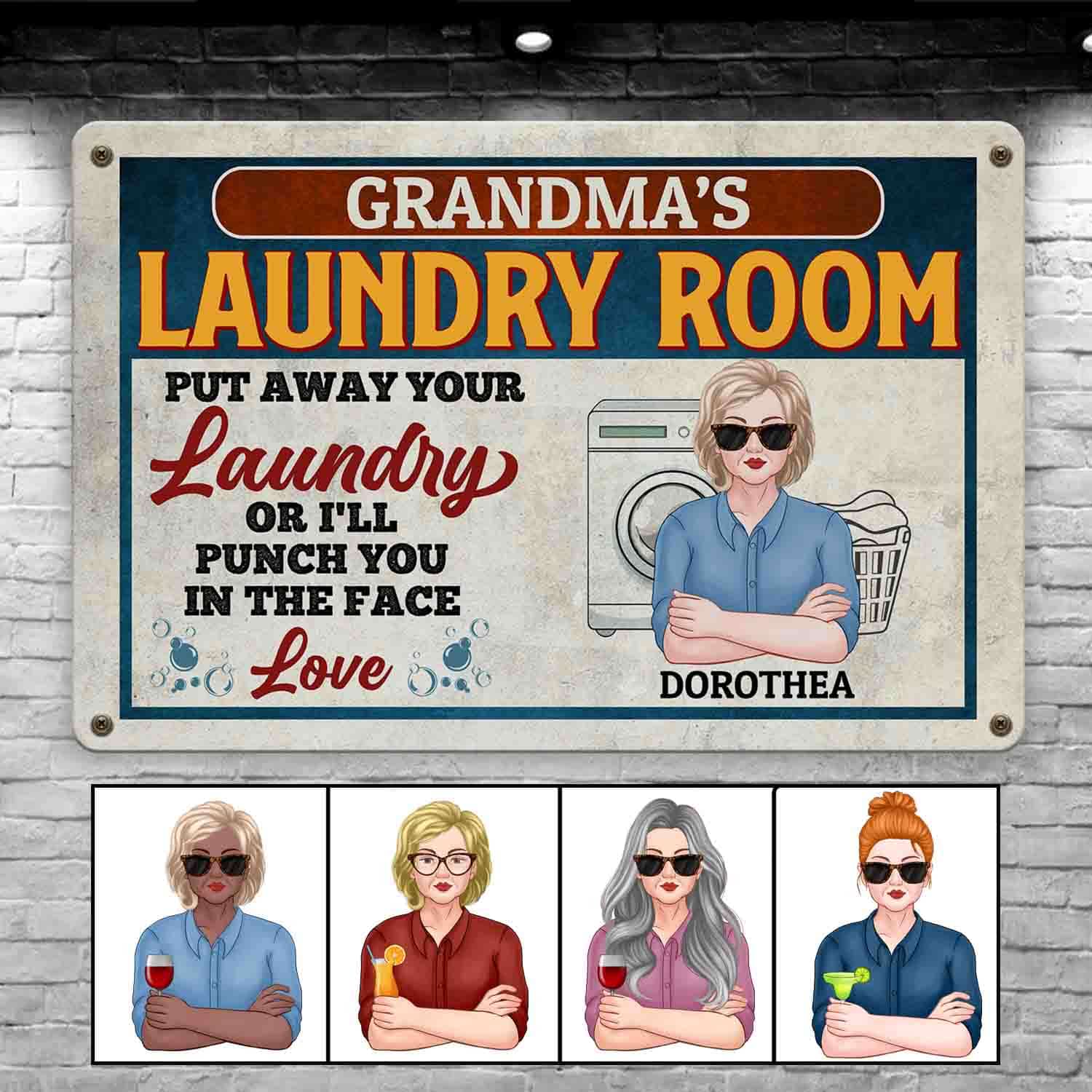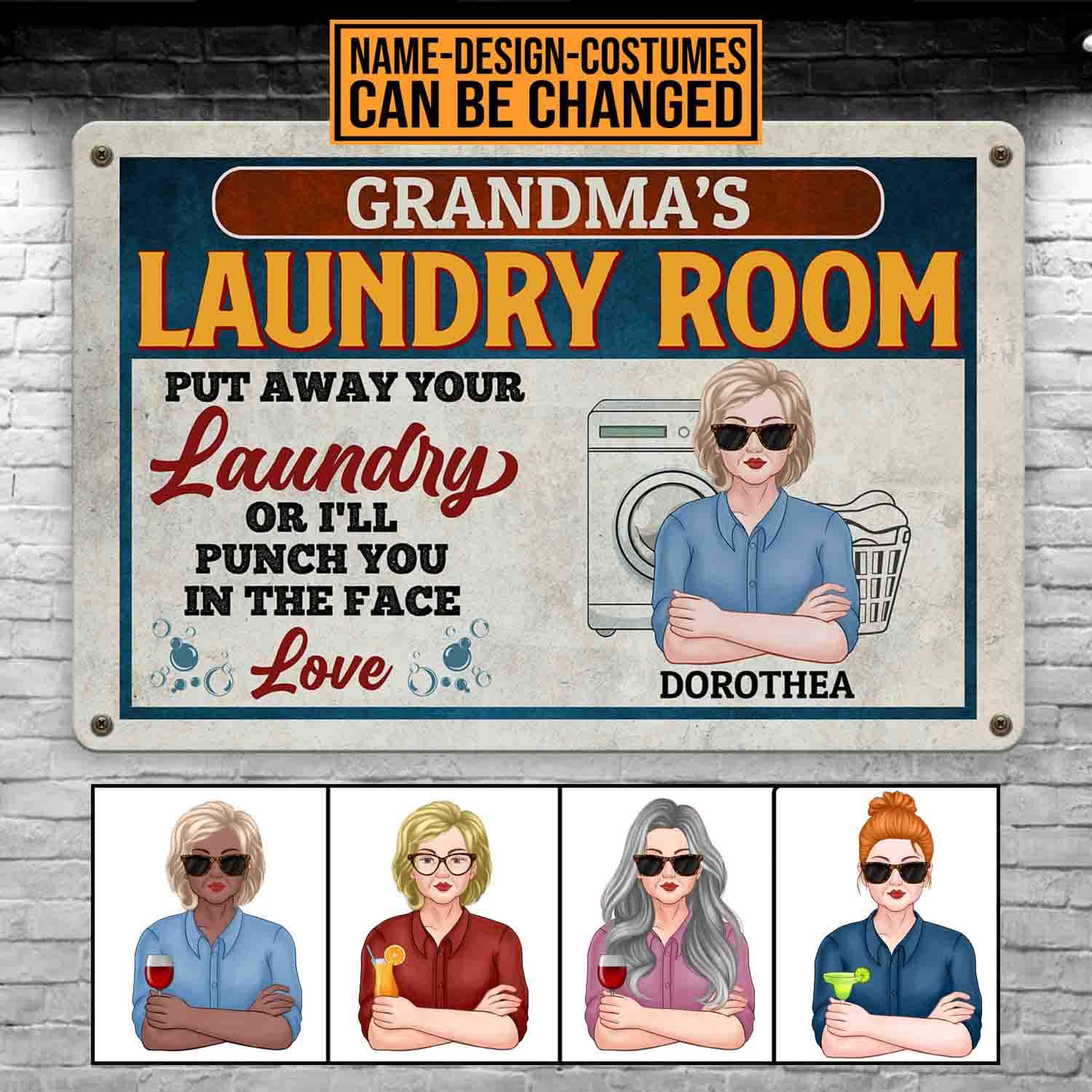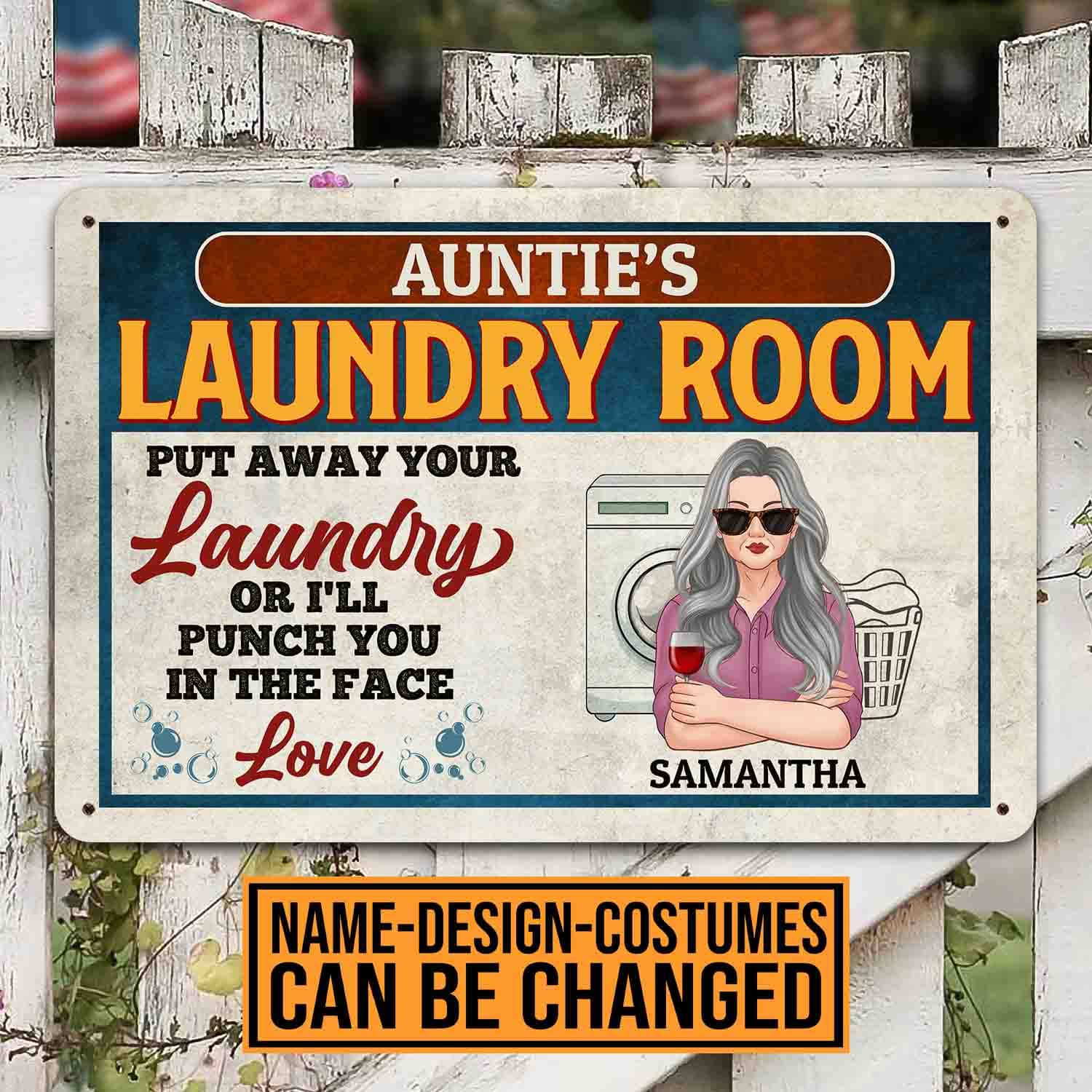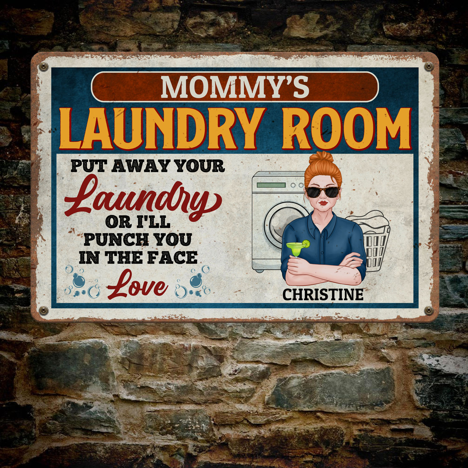 Let’s Shop Personalized Family Laundry Room Put Away Your Laundry Or I’ll Punch You In The Face Decorative Metal Sign!