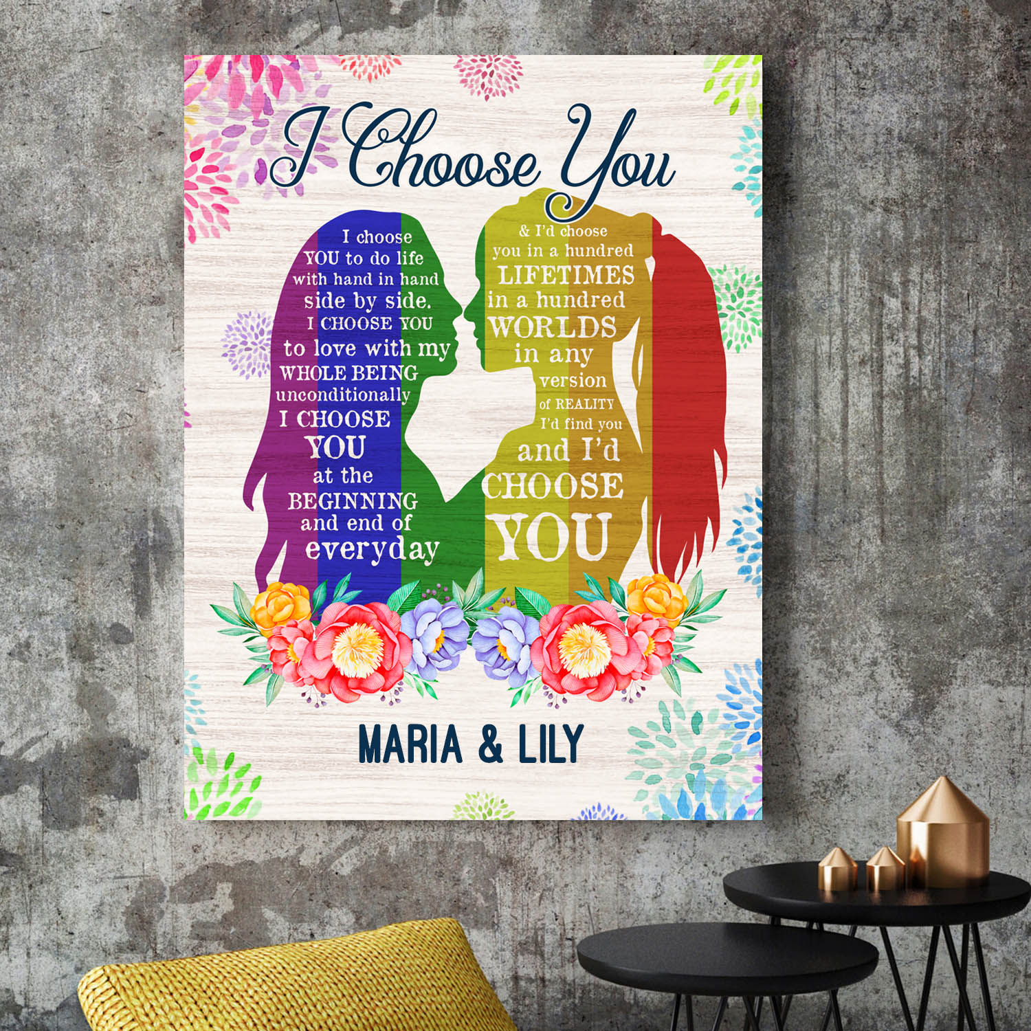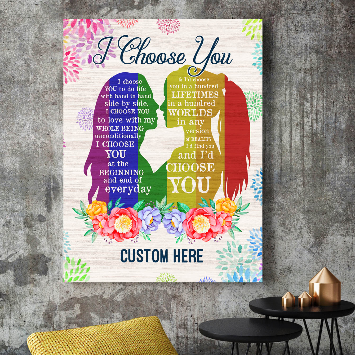 Let’s Shop Personalized I Choose You To Do Life With Hand In Hand LGBT Lesbian Pride Framed Canvas Prints – Unframed Poster!