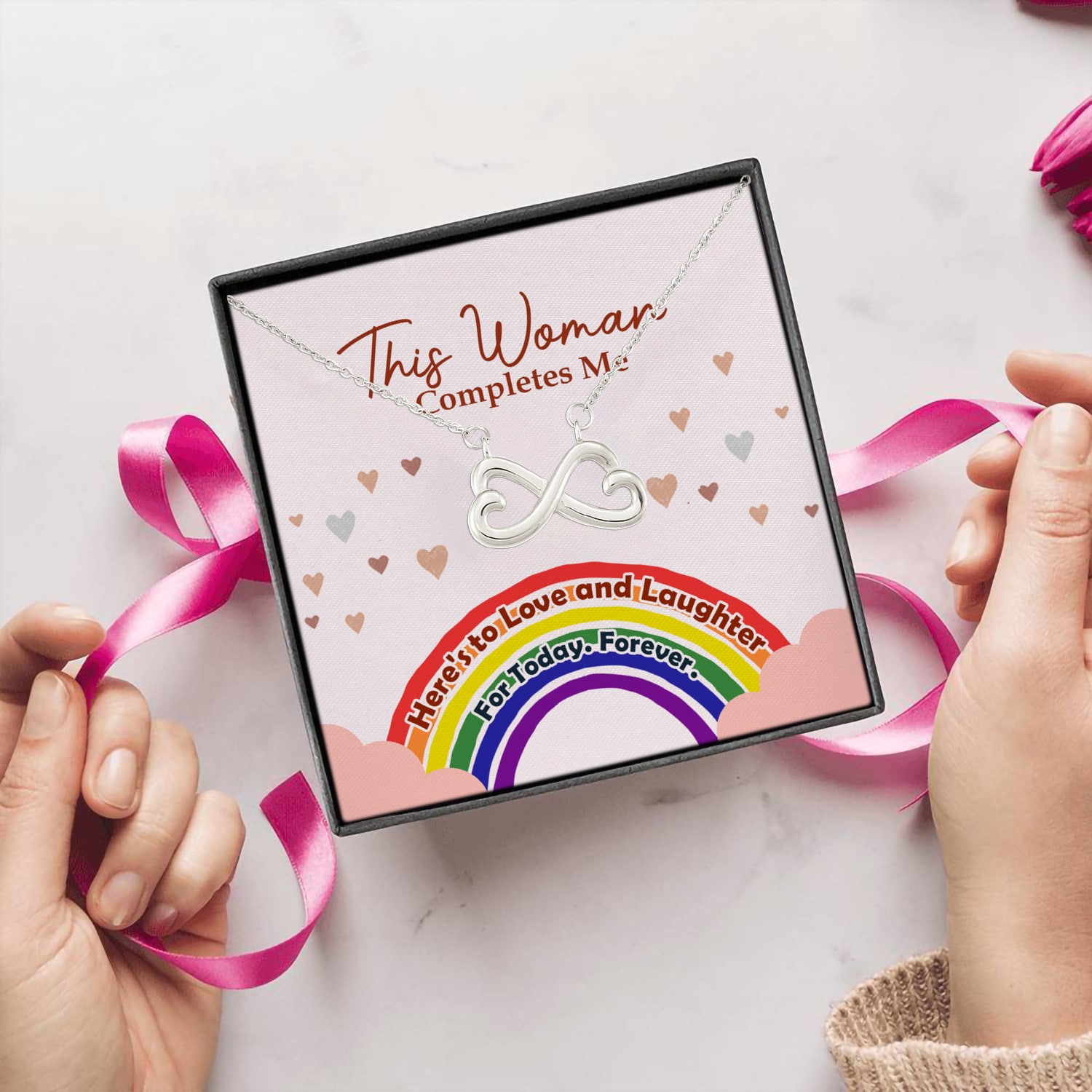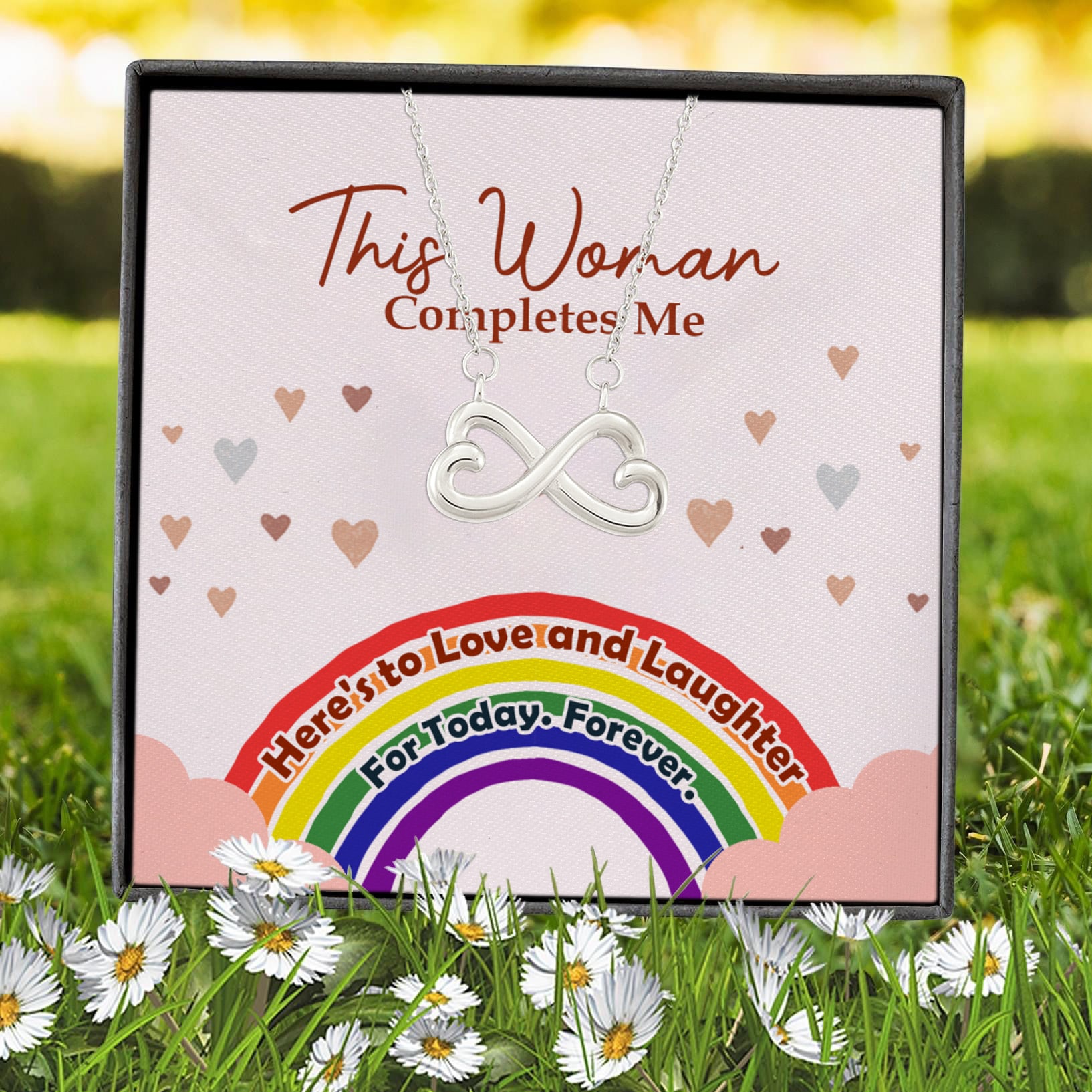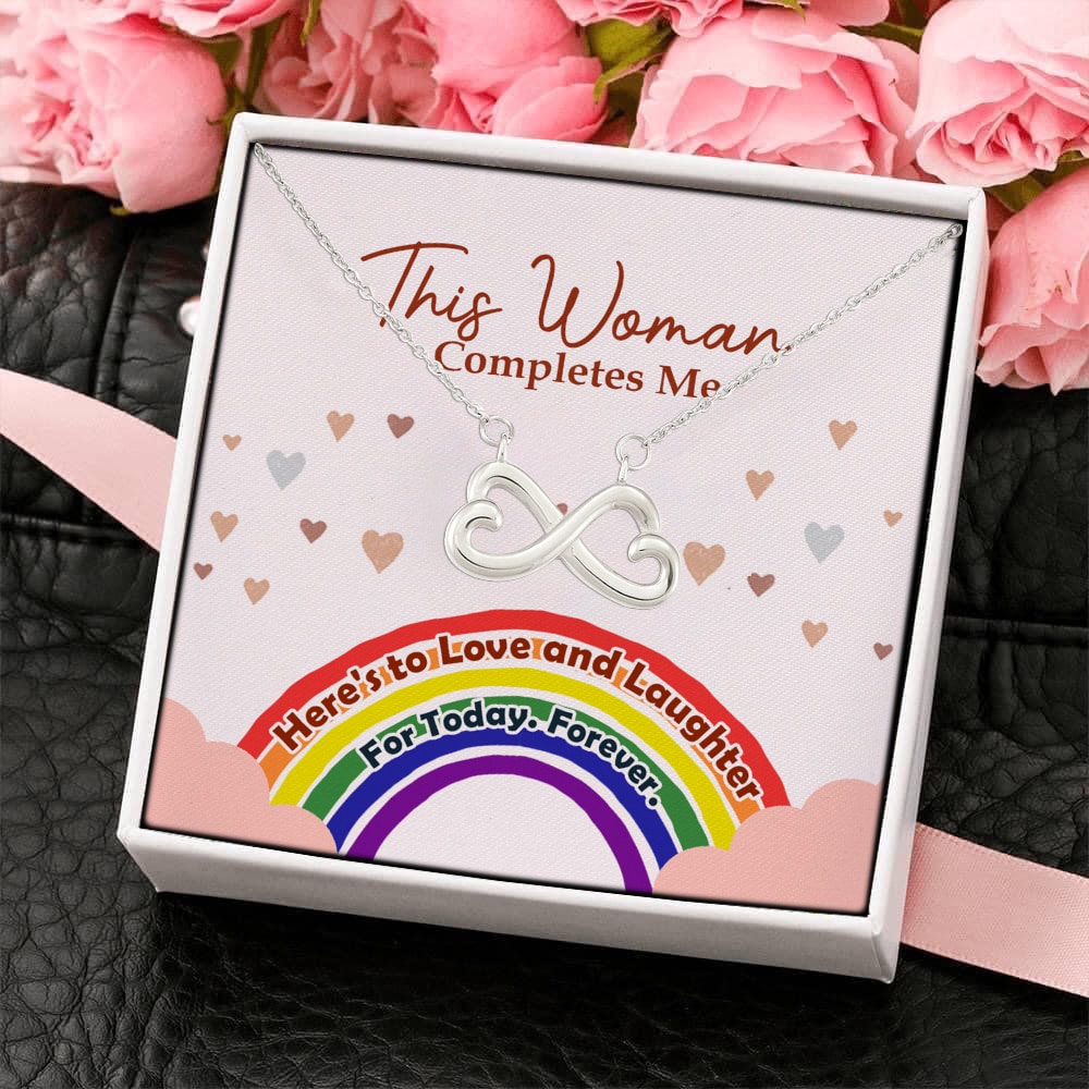 Let’s Shop LGBT Lesbian This Woman Completes Me Infinity Hearts Pendant Necklace – Gift For Lesbian!