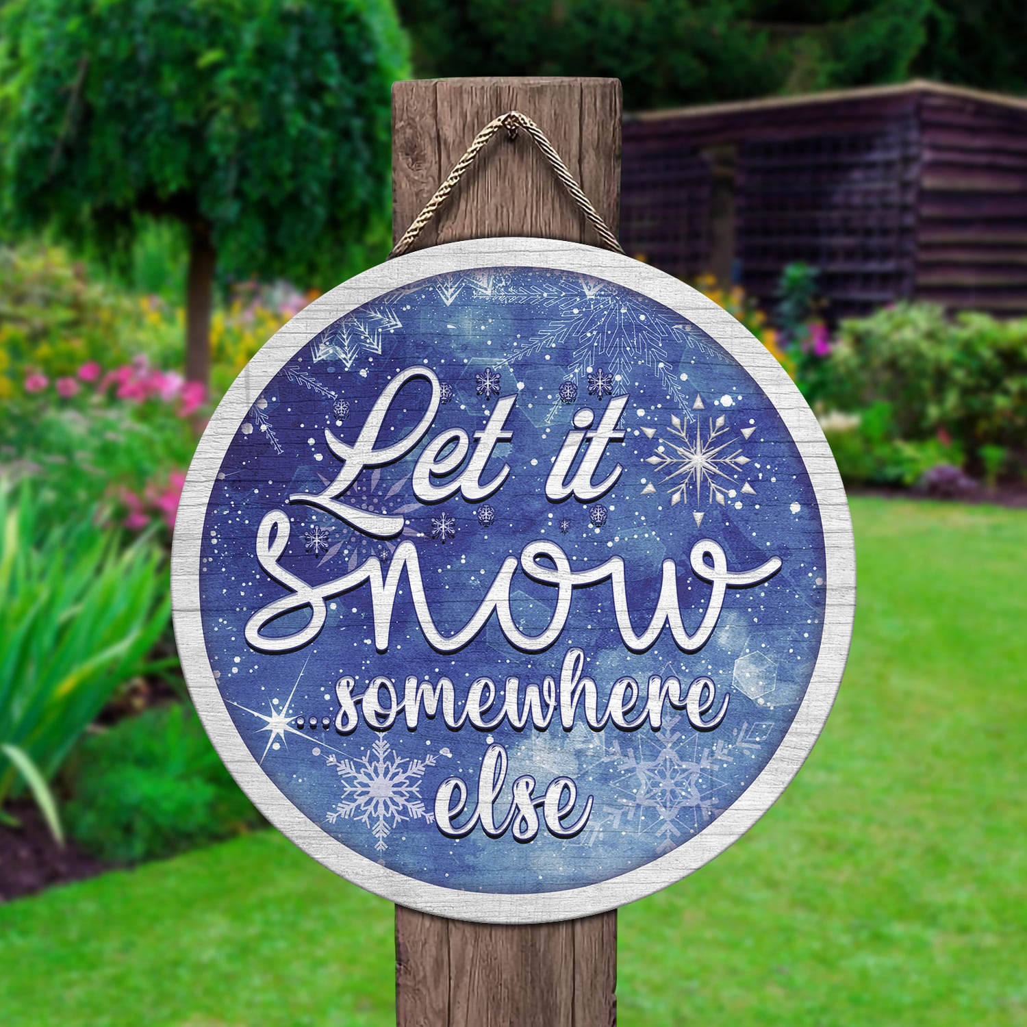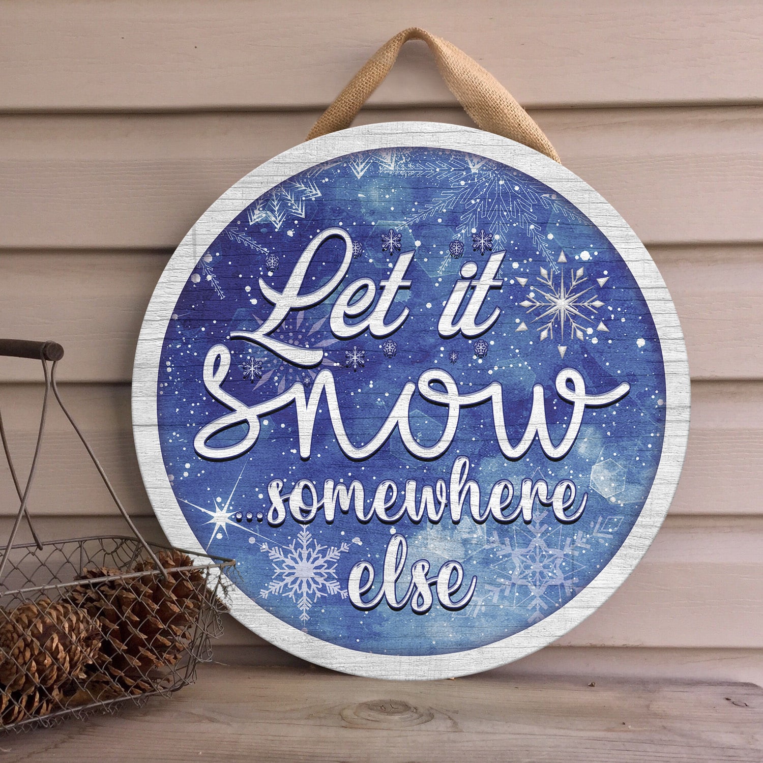 Let’s Shop Let It Snow Somewhere Else Christmas Decorative Circle Wooden Door Sign-Front Porch Sign Indoor Outdoor Decor Farmhouse!