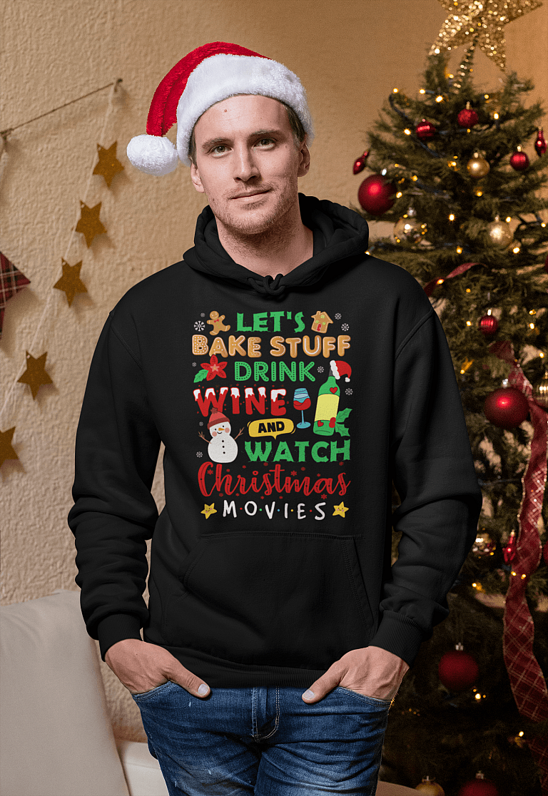 Let’s Bake Stuff Drink Wine and Watch Christmas Movie Hoodie – Sweatshirt – Long Sleeve