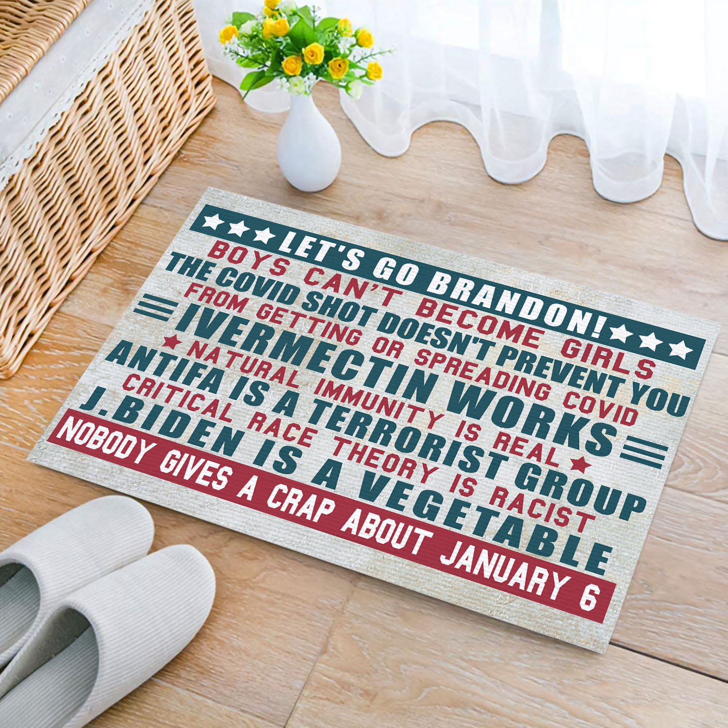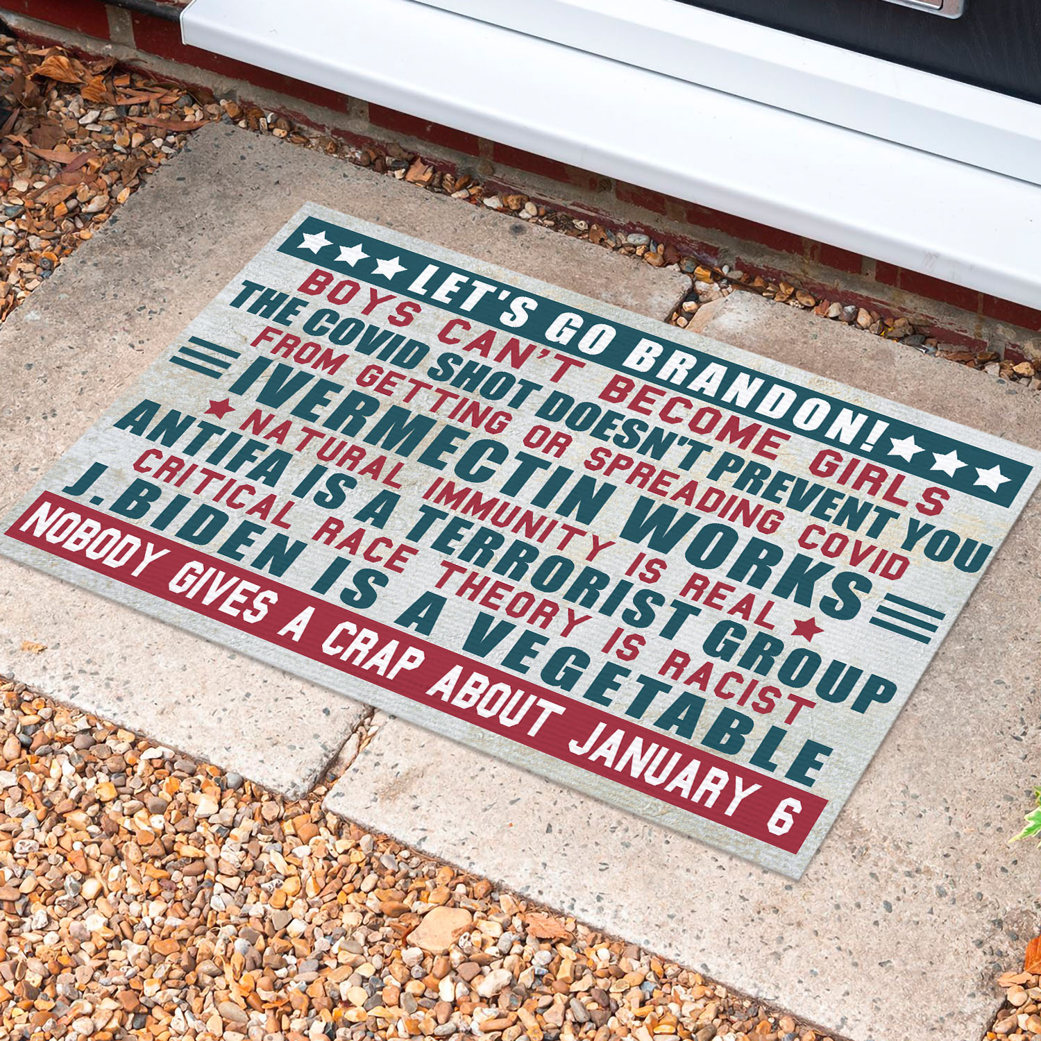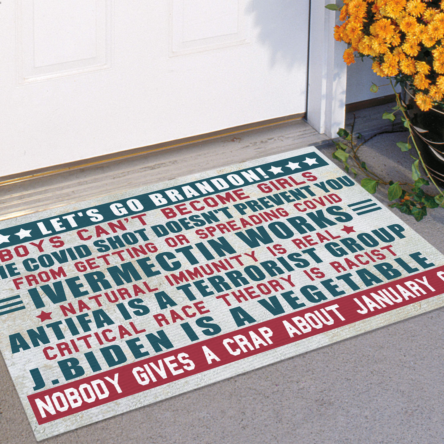 Let’s Shop Let’s Go Brandon Boys Can’t Become Girls J Biden Is A Vegetable Conservative Anti Biden Indoor Outdoor Doormat!