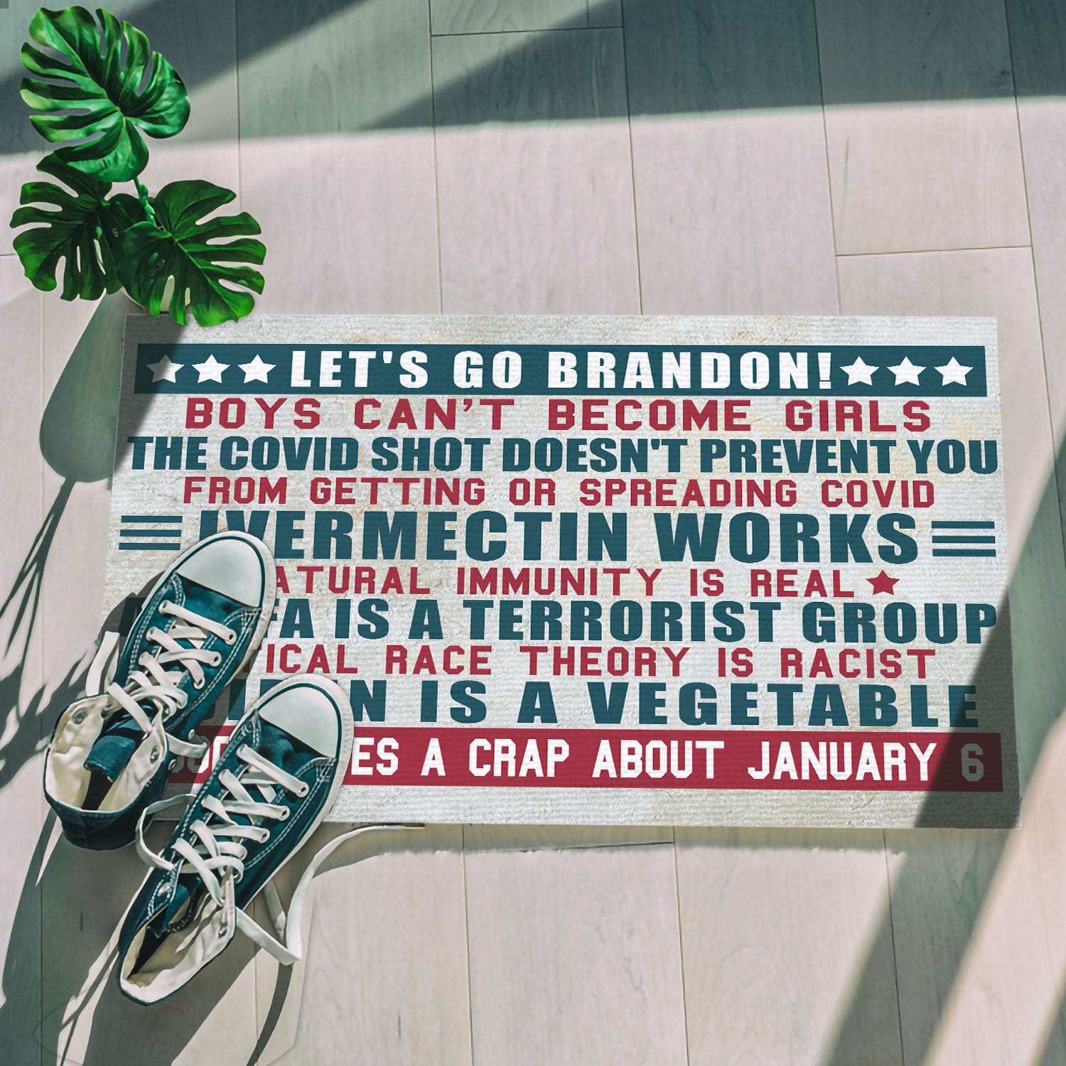 Are you spending too much time to find creative merchandise for you or suitable & special gifts for your mommy, your daddy, your son, your daughter, your children, your friends or someone you love? The struggle is over because we have various Let’s Go Brandon Doormat, Let’s Go Branson Sign, Lets Go Brandon Doormat, Anti Biden Doormat, Fuck Biden Doormat, Conservative Doormat, Let’s Go Brandon Boys Cant Become Girls, Nobody Gives a Crap About January 6, Anti Biden Door Mat, Trump Doormat Funny, Joe Biden Doormat, Joe Biden Doormat Funny which will make perfect presents for your beloveds. In order to make your present stand out, we have created lots of unique and awesome customized photo gifts & personalized designs.