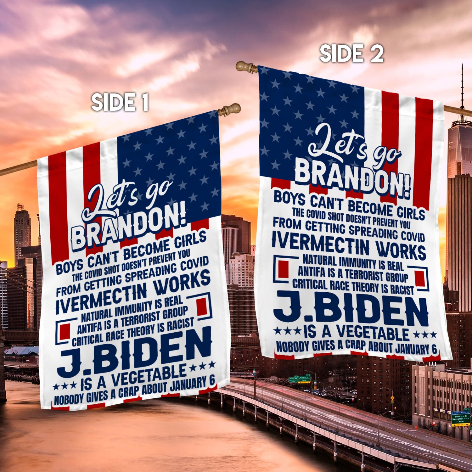 At CubeBik, besides custom flags, we also offer tees, hoodies, sweaters, raglans, tanks, wall arts, canvases, posters, mugs, blankets, engraved jewelry, personalized necklaces, printed face masks, throw pillows, tote bags, hats, accessories and more on our website, so do not miss our other Let’s Go Brandon Boys Can’t Become Girls the Covi Shot Doesn’t Prevent You, Let’s Go Brandon Flag, Joe Biden Sucks Flag, Anti Biden Flag, Biden Not My President, Biden Sucks Flag, Joe Biden and Hoe, Biden and Harris Flag, Funk Biben Flag, Biden Dementia Flag, Fck Biden and Fck You for Voting for Him Flag, Fuk Joe Biden 3×5 Flag, Biden Sucks Kamala Swallows, Buck Fiden, Fck Joe Biden Flag, F Biden Flag, Impeach Biden Flag, Anti Biden Flag, Biden Is an Idiot Flag, Know Your Parasites Anti Biden Flag, Biden Brain Dead, Biden the Quicker, Anti Biden Flags, Funny Biden Flag, Biden I Did That, Biden Clown Flag related merchandise. Moreover, all the products are made-to-order and one of a kind custom designs you can’t get elsewhere in normal stores. Let’s discover CubeBik.com now and find your favorite personalized items. We can’t wait to surprise and build beautiful memories with you and your loved ones.