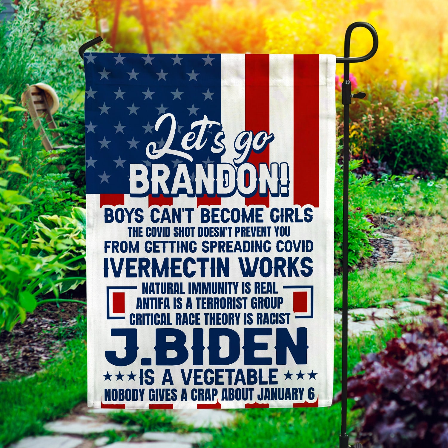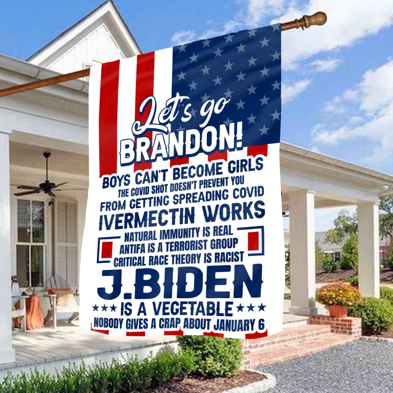 Let’s Shop Let’s Go Brandon Boys Can’t Become Girls the Covid Shot Doesn’t Prevent You Entrance Outdoor Indoor Decorative Garden Flag – House Flag – Wall Flag!