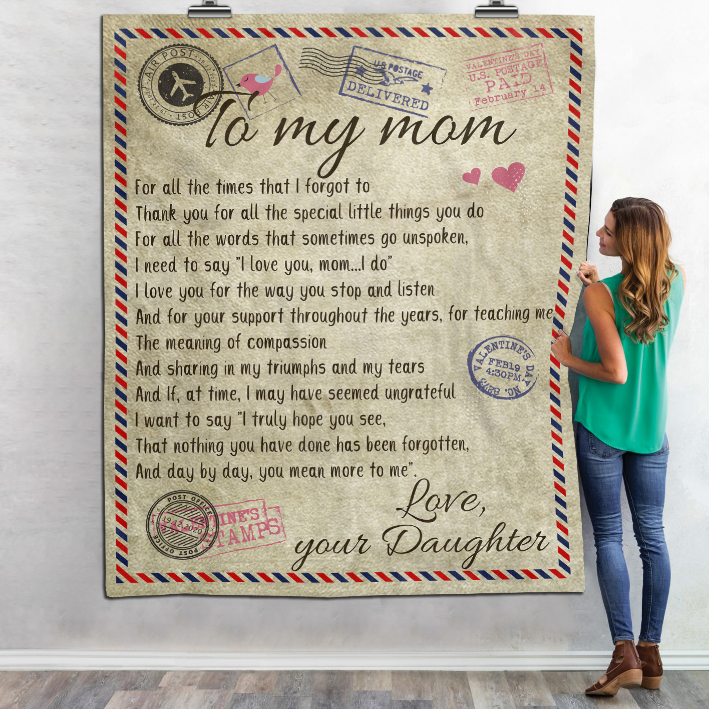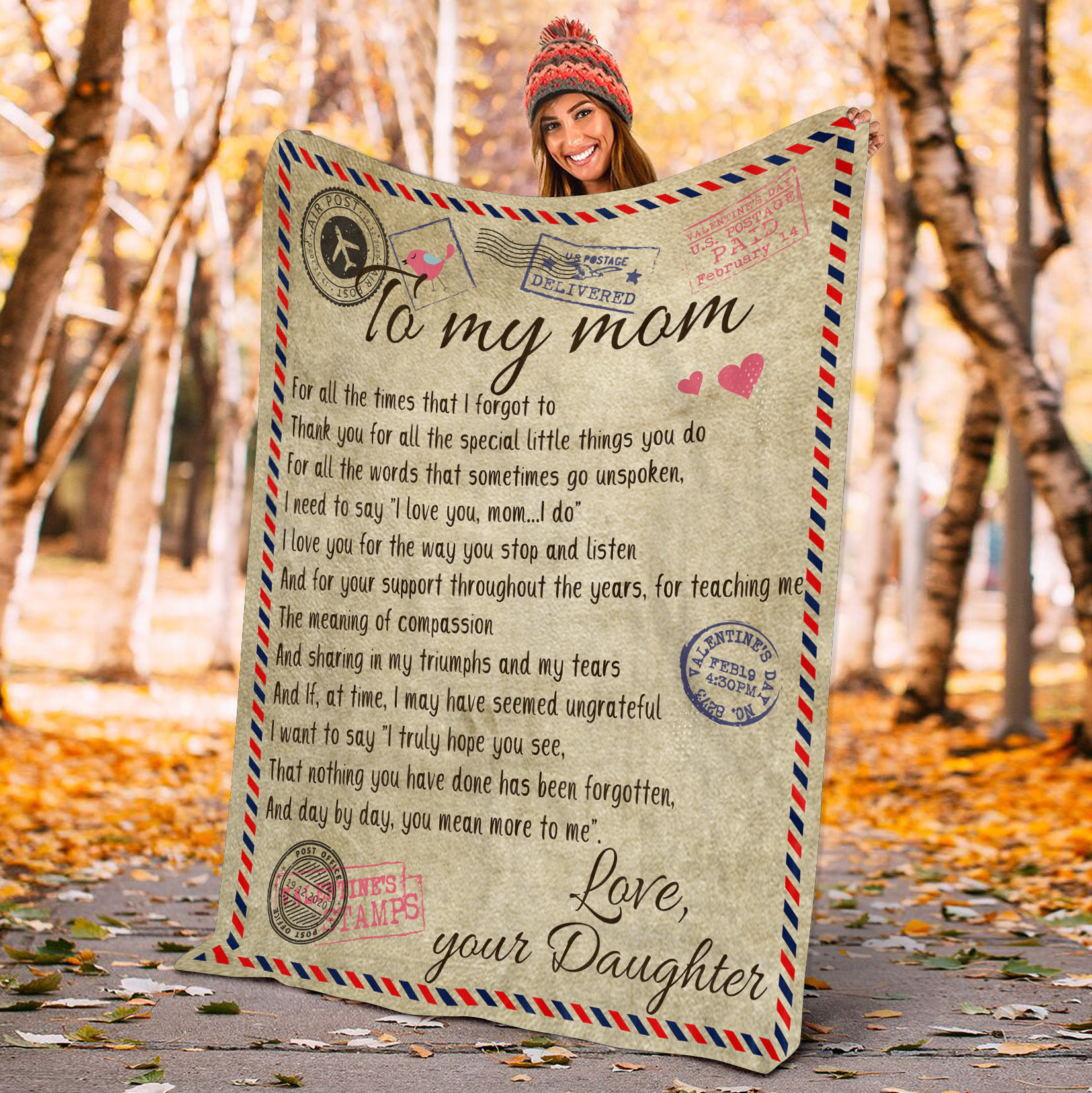 Are you spending too much time to find creative merchandise for you or suitable & special gifts for your mommy, your daddy, your son, your daughter, your children, your friends or someone you love? The struggle is over because we have various Letter Blanket To My Mom, Letter To My Mom Blanket, Airmail To My Mom Blanket, Airmail Blanket To My Mom, To My Mom Blanket from Daughter, To My Mom Throw Blankets from Daughter, To My Mom a Blanket Hug, Blanket Gift for Mom, Mother’s Day Blanket, I Love My Mom Blanket, Mothers Day Gift Blanket, Mothers Day Blanket from Daughter which will make perfect presents for your beloveds. In order to make your present stand out, we have created lots of unique and awesome customized photo gifts & personalized designs.