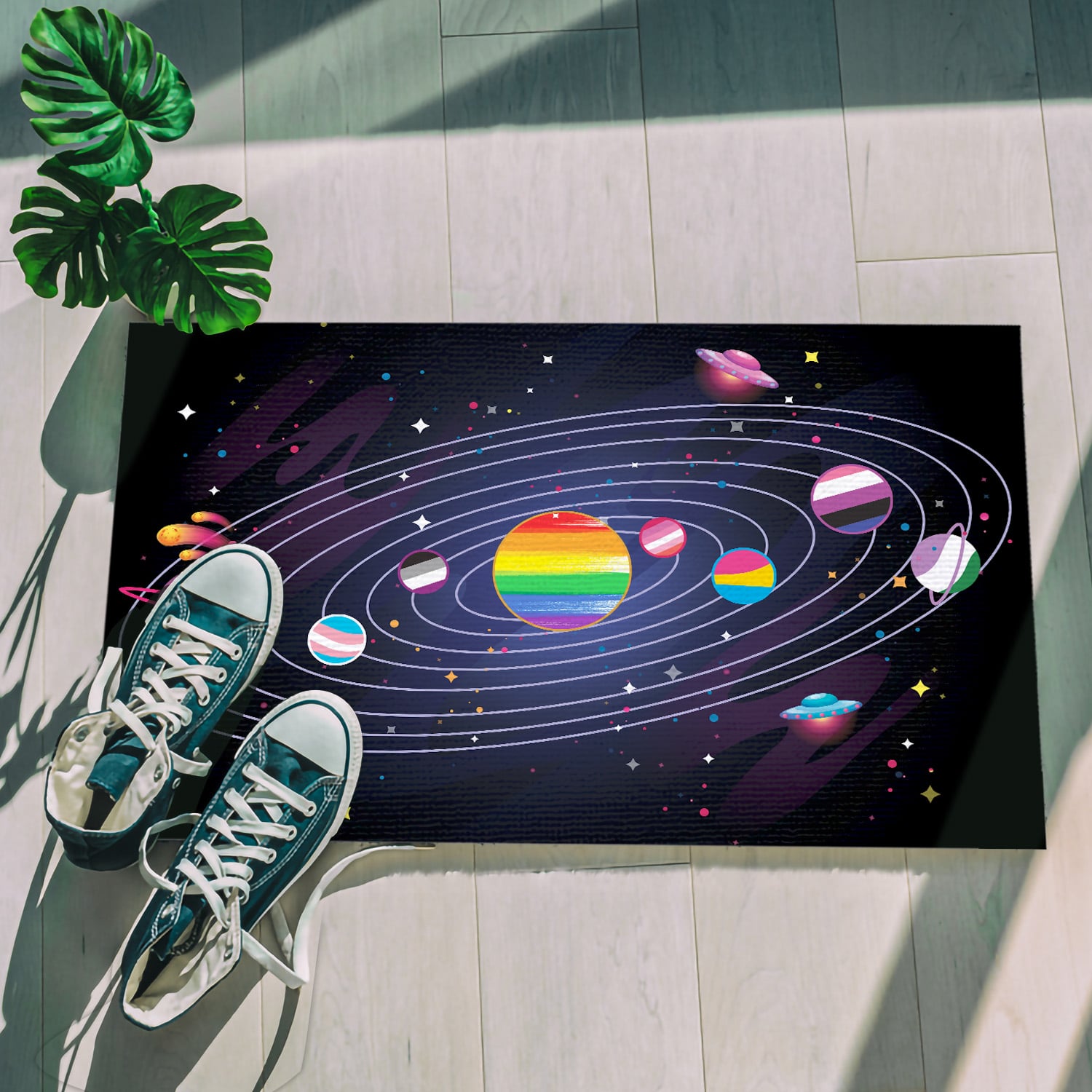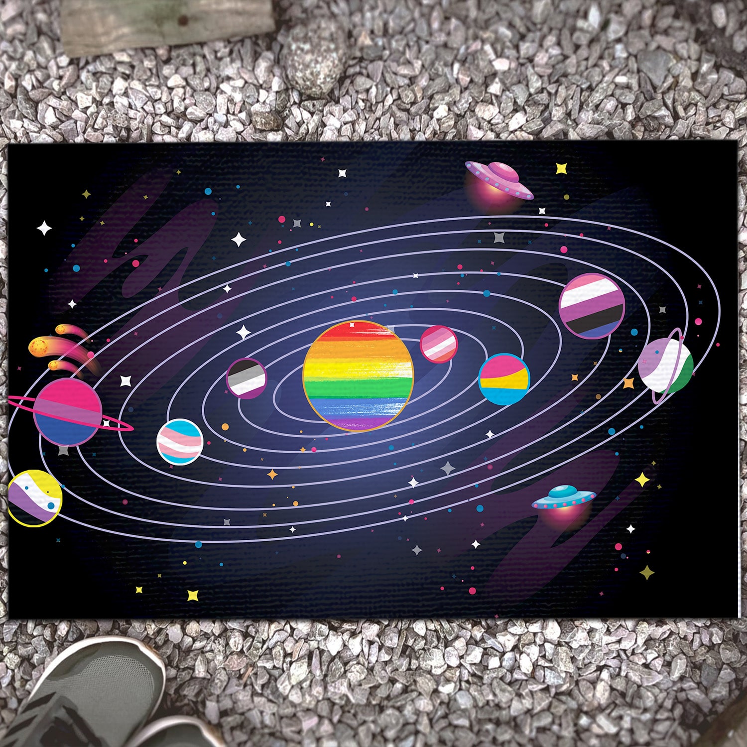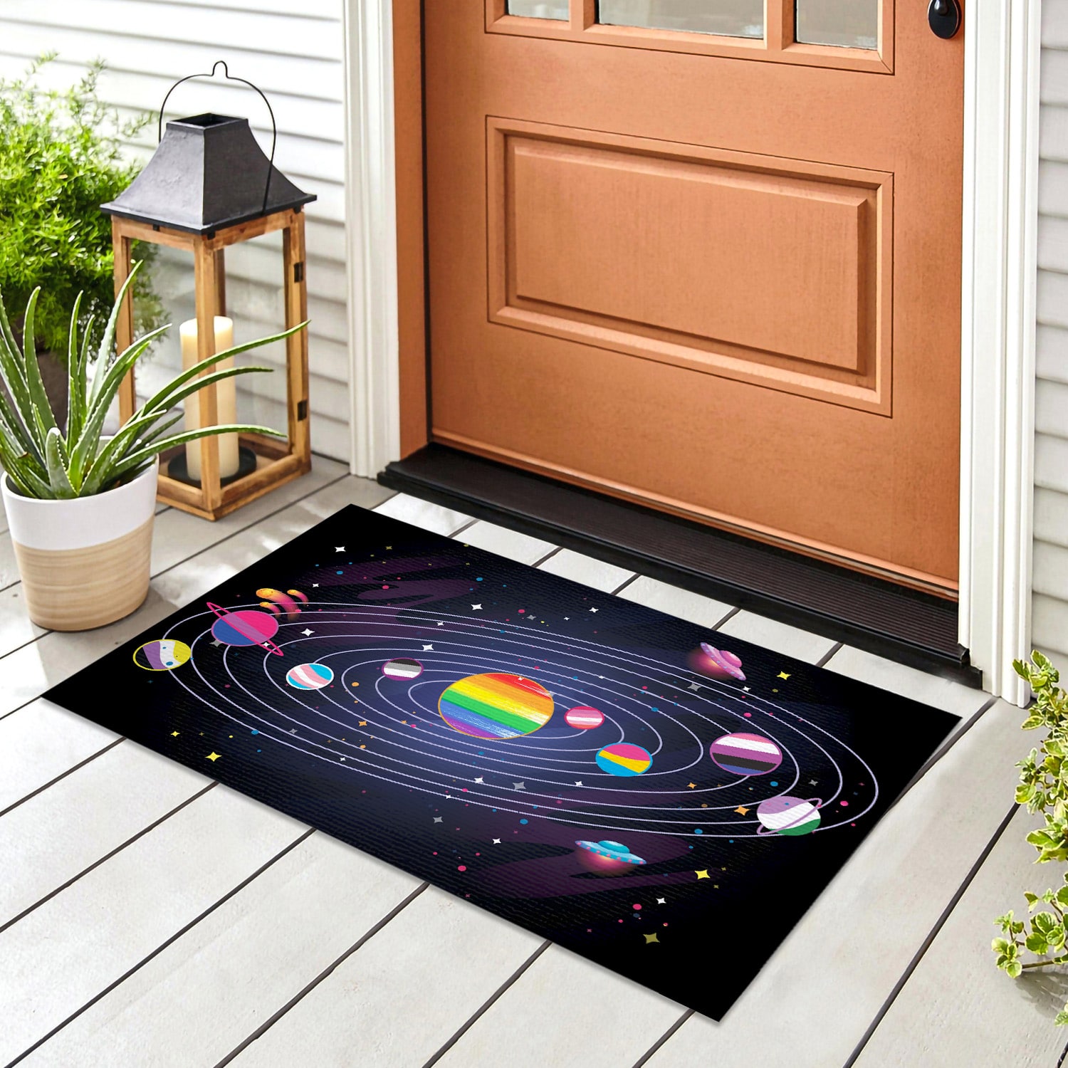 Let’s Shop LGBT Planets Doormat – Outdoor Indoor Doormat – LGBT Space Doormat!