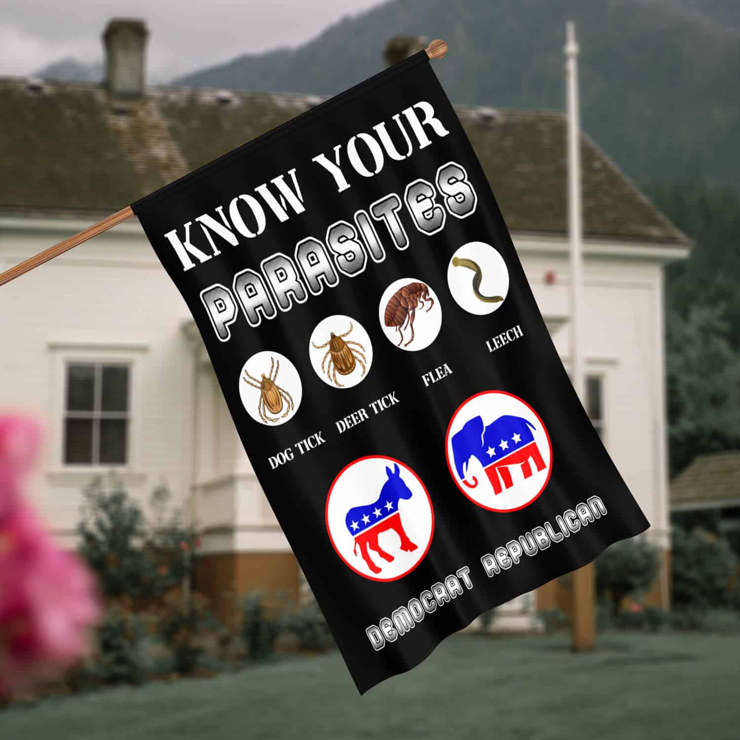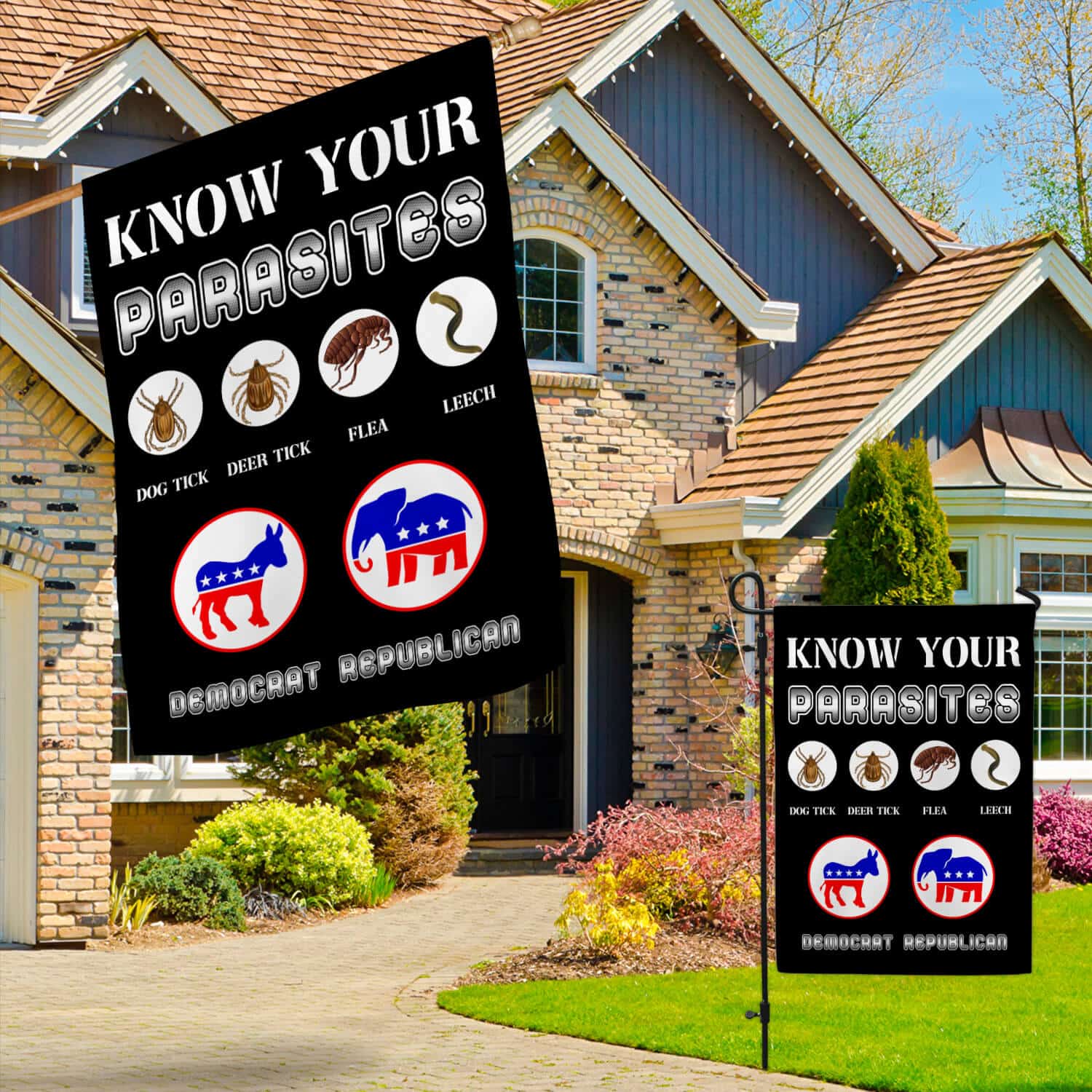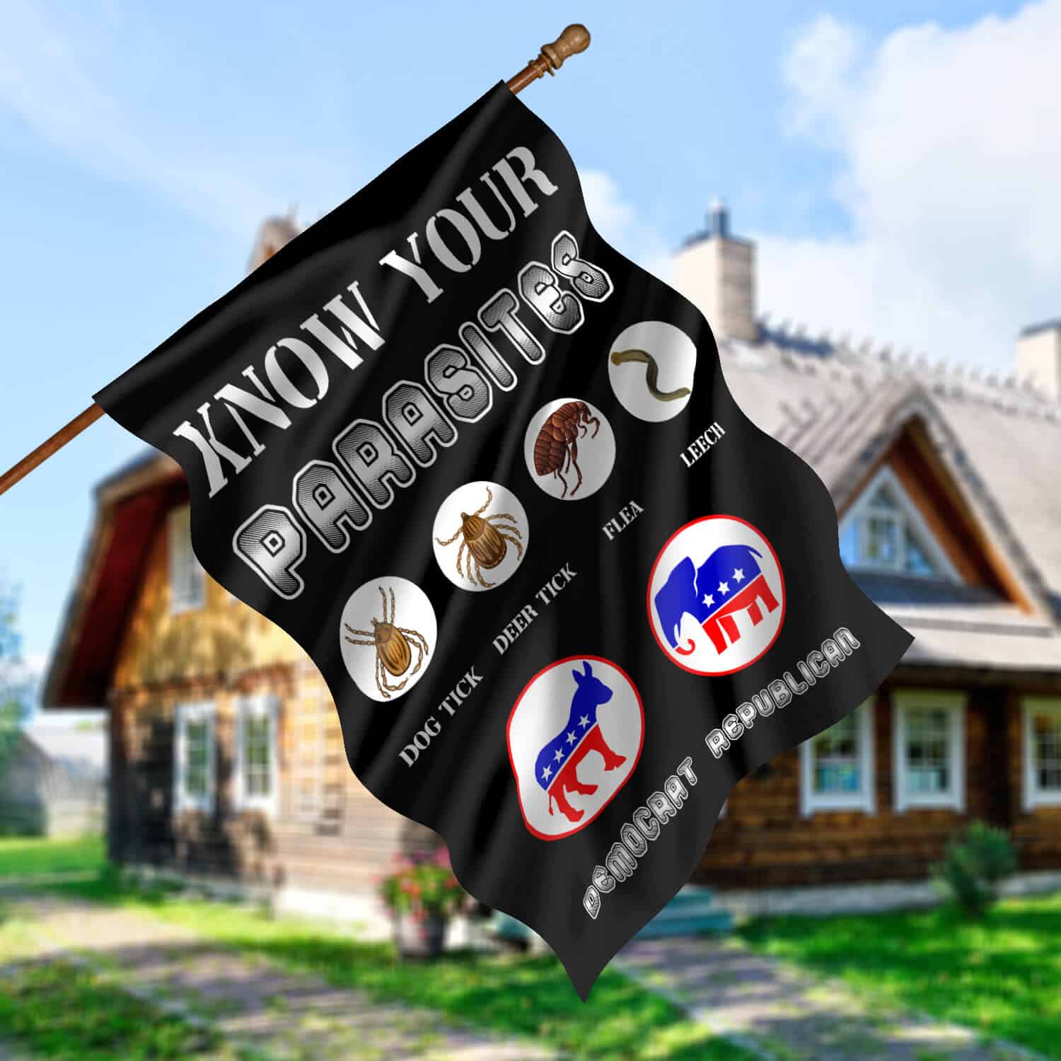 Let’s Shop Funny Sarcastic Know Your Parasites Flag – Libertarian Political Garden Flag – House Flag – Wall Flag!