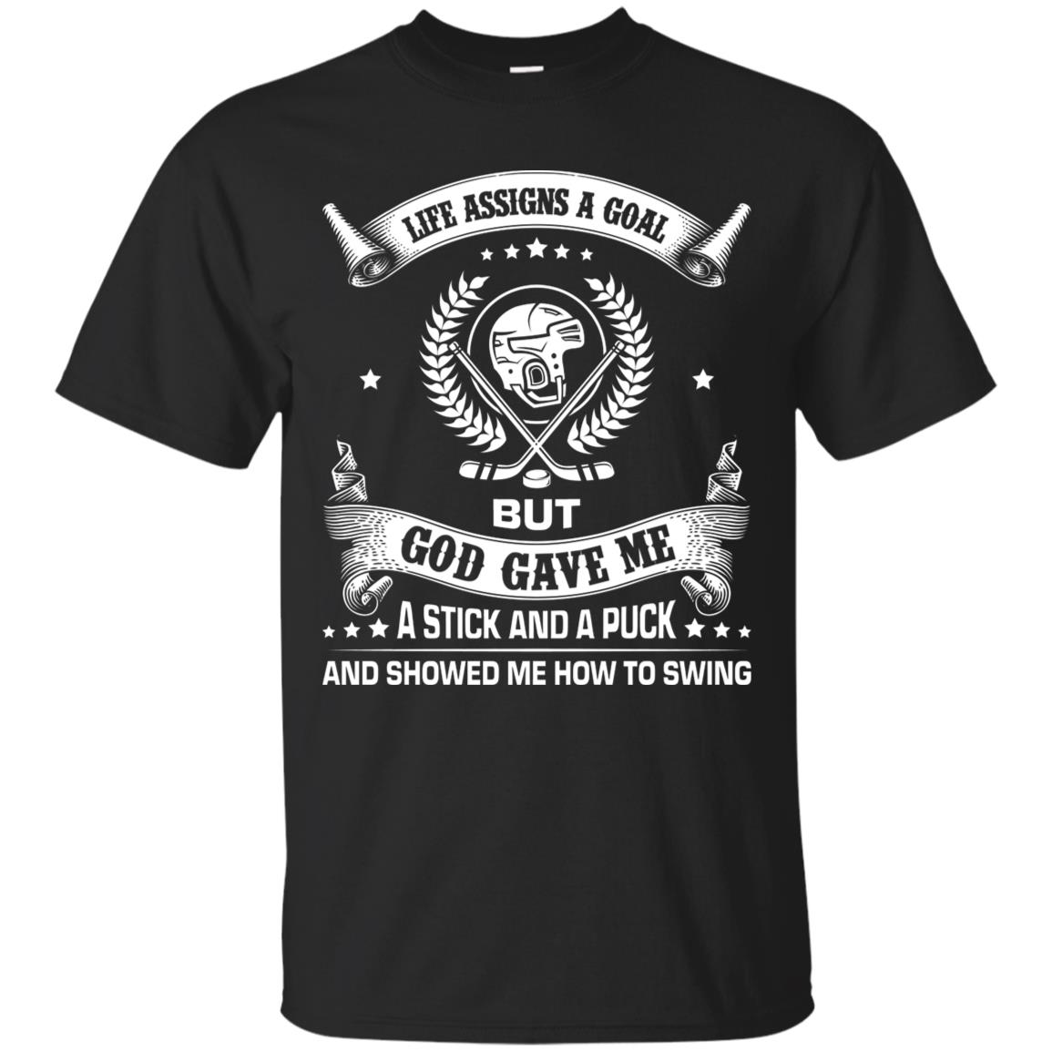Life Assigns A Goal But God Gave Me A Stick And A Puck And Showed Me How To Swing T-Shirt
