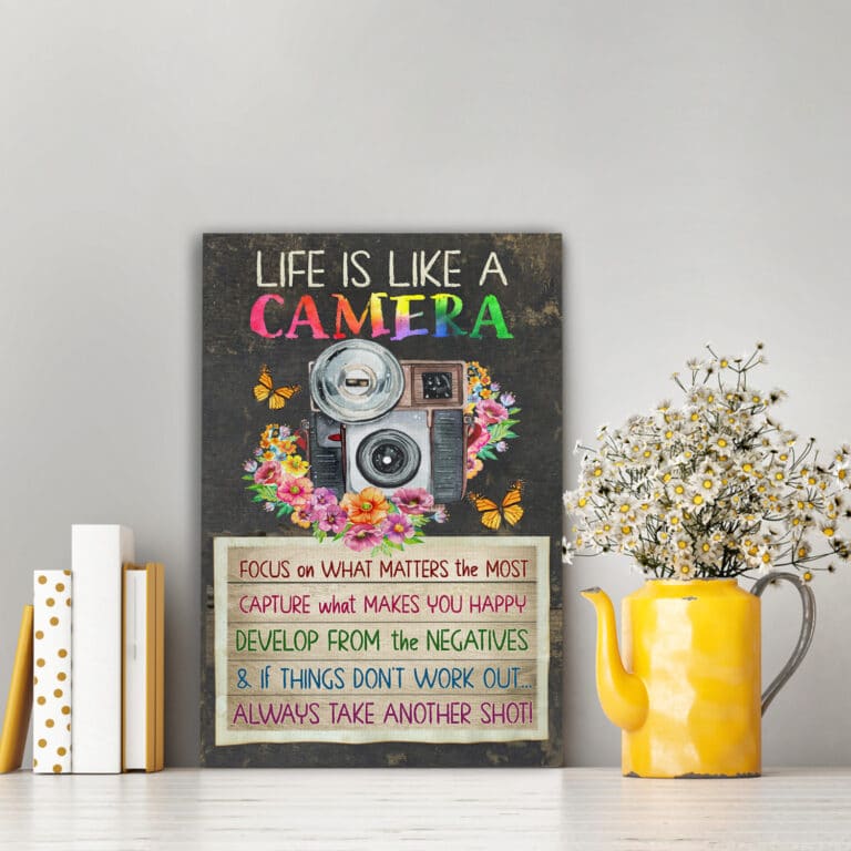 Are you spending too much time to find creative merchandise for you or suitable & special gifts for your mommy, your daddy, your son, your daughter, your children, your friends or someone you love? The struggle is over because we have various Life Is Lịke a Camera Canvas, Life Is Lịke a Camera Wall Art, Photography Wall Art, Photography Canvas, Focus on What Matter Canvas, Life Is Like a Camera Sign, Camera Wall Decor, Camera Flower Wall Art which will make perfect presents for your beloveds. In order to make your present stand out, we have created lots of unique and awesome customized photo gifts & personalized designs.