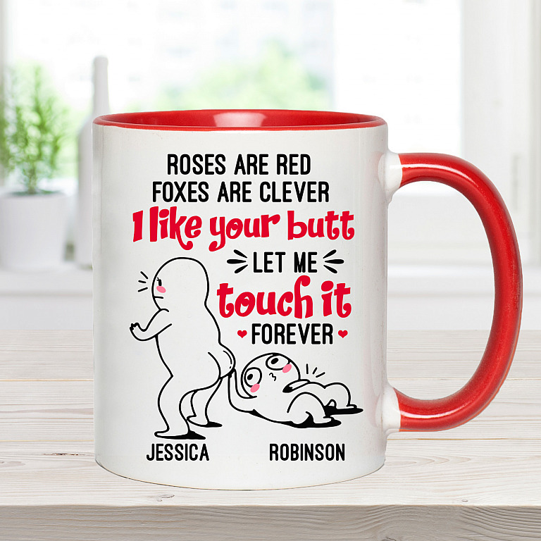 Shop Personalized Roses Are Red Foxes Are Clever I Like Your Butt Let Me Touch It Forever Accent Mug.