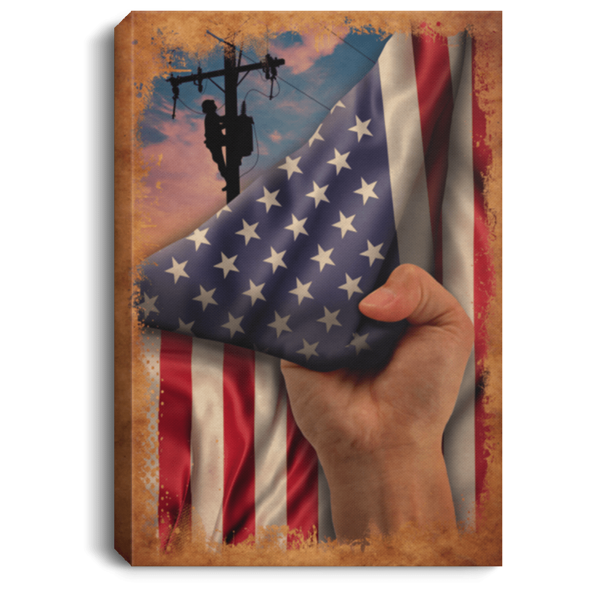Lineman American Flag Electrician Wrapped Framed Canvas Prints – Unframed Poster – Home Decor Wall Art