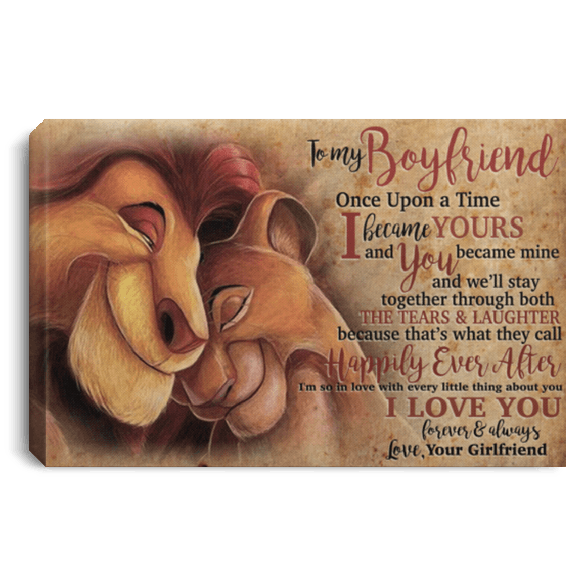 At CubeBik LLC, besides canvases, we also offer tees, hoodies, sweaters, raglans, tanks, wall arts, canvases, mugs, blankets, throw pillows, tote bags, hats, accessories and more on our website, so do not miss other To My Boyfriend, Lion Wall Art, Lion Canvas Wall Art, Lion Artwork, To My Boyfriend Wallet, To My Boyfriend Gifts, You Are Braver Than You Believe Stronger Than You Seem Smarter Than You Think, to My Wife I Wish I Could Turn Back the Clock Mug, Valentine Mug, to My Wife Mug, to My Gorgeous Wife Mug, Gift for Wife, Valentine Gift And Lion King Canvas relating merchandise, and all of them are one of a kind custom designs you can’t get elsewhere in normal stores. Let’s discover CubeBik and find your favorites. We can’t wait to surprise and build beautiful memory with you and your loved ones.