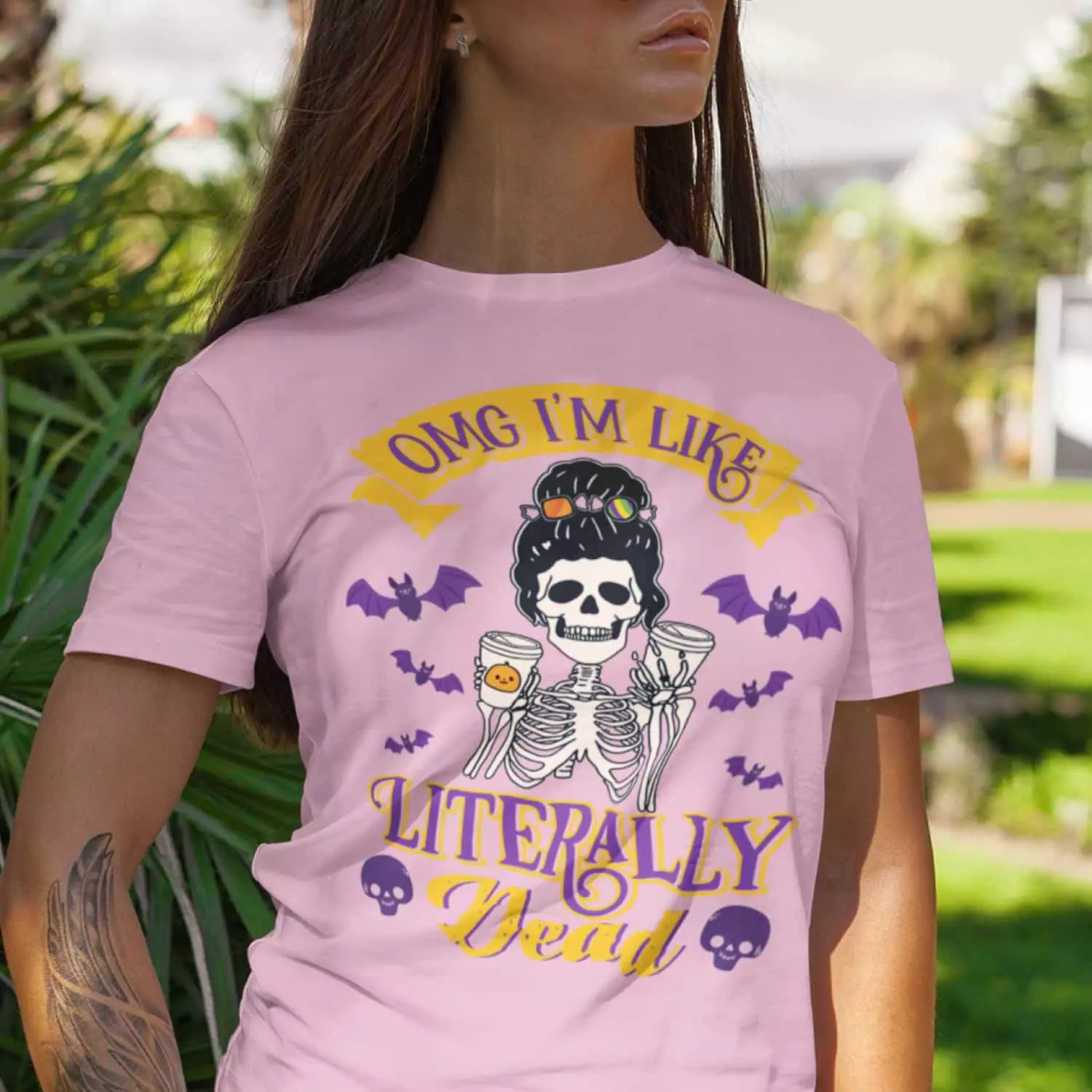 Are you spending too much time to find creative merchandise for you or suitable & special gifts for your mommy, your daddy, your son, your daughter, your children, your friends or someone you love? The struggle is over because we have various Omg I’m Like Literally Dead T-shirts – V-Neck Tee, Halloween Shirt, Skeleton Shirt, Literally Dead Shirt, Halloween Messy Bun Skull Shirt, Halloween Shirts For Women, Skeleton Shirts For Women, Halloween Theme Shirt, Halloween Apparel, Halloween Clothing, Halloween Party Shirt, Halloween Party Gifts, Halloween Gifts which will make perfect presents for your beloveds. In order to make your present stand out, we have created lots of unique and awesome customized photo gifts & personalized designs.