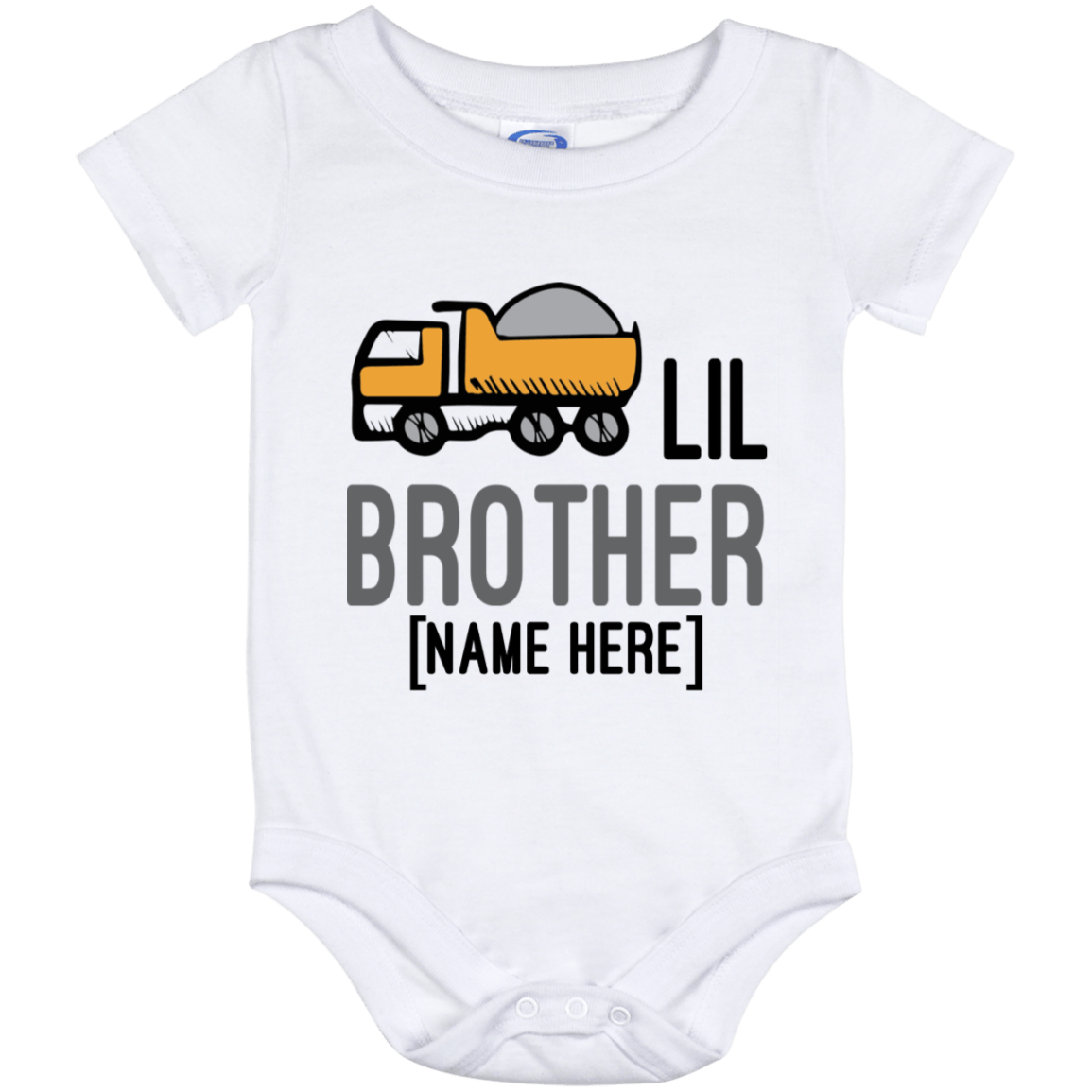 Shop Personalized Lil Brother Baby Onesie – Cute Truck Baby Infant Bodysuit.