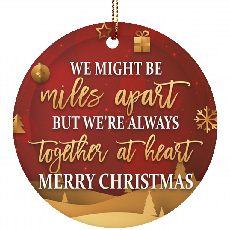 We Might Be Miles Apart But We’re Always Together At Heart Merry Christmas Flat Circle Ornament Keepsake