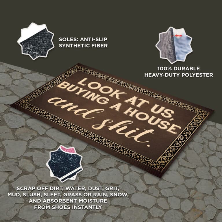 At CubeBik, besides custom doormats, we also offer tees, hoodies, sweaters, raglans, tanks, wall arts, canvases, posters, mugs, blankets, engraved jewelry, personalized necklaces, printed face masks, throw pillows, flags, tote bags, hats, accessories and more on our website, so do not miss our other Look At Us Buying A House and Shit Doormat, Buying A House and Shit Mat, Funny House Mat, Buying A House and Shit Door Mat, Look At Us Mat, Funny Mat, Funny Shit Mat related merchandise. Moreover, all the products are made-to-order and one of a kind custom designs you can’t get elsewhere in normal stores. Let’s discover CubeBik.com now and find your favorite personalized items. We can’t wait to surprise and build beautiful memories with you and your loved ones.