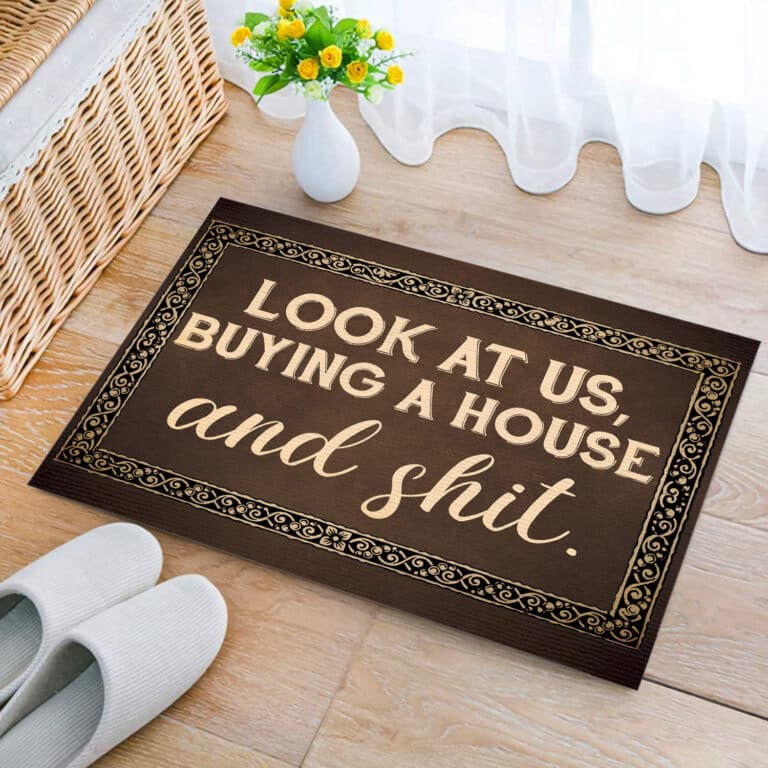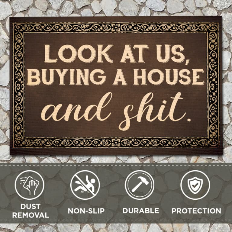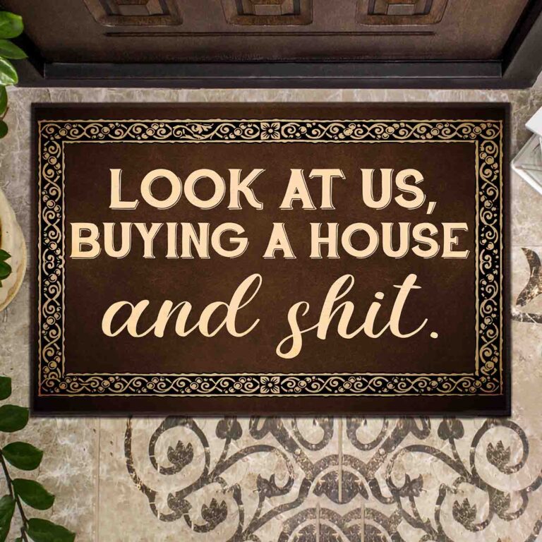 Are you spending too much time to find creative merchandise for you or suitable & special gifts for your mommy, your daddy, your son, your daughter, your children, your friends or someone you love? The struggle is over because we have various Look At Us Buying A House and Shit Doormat, Buying A House and Shit Mat, Funny House Mat, Buying A House and Shit Door Mat, Look At Us Mat, Funny Mat, Funny Shit Mat which will make perfect presents for your beloveds. In order to make your present stand out, we have created lots of unique and awesome customized photo gifts & personalized designs.