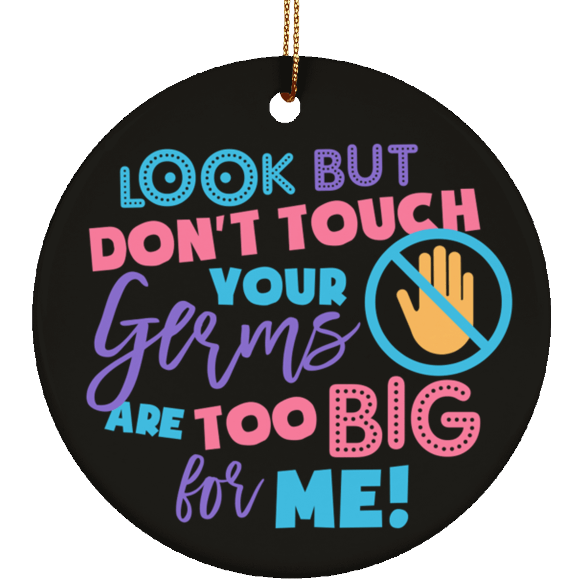 Shop Look but Don’t Touch Your Germs Are Too Big Baby Shower Porcelain Ceramic Circle Ornament.