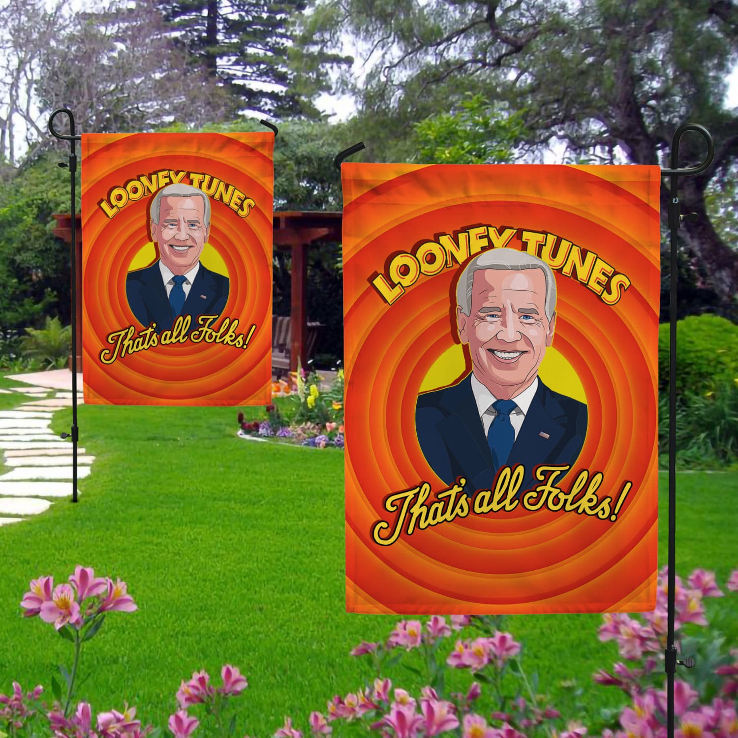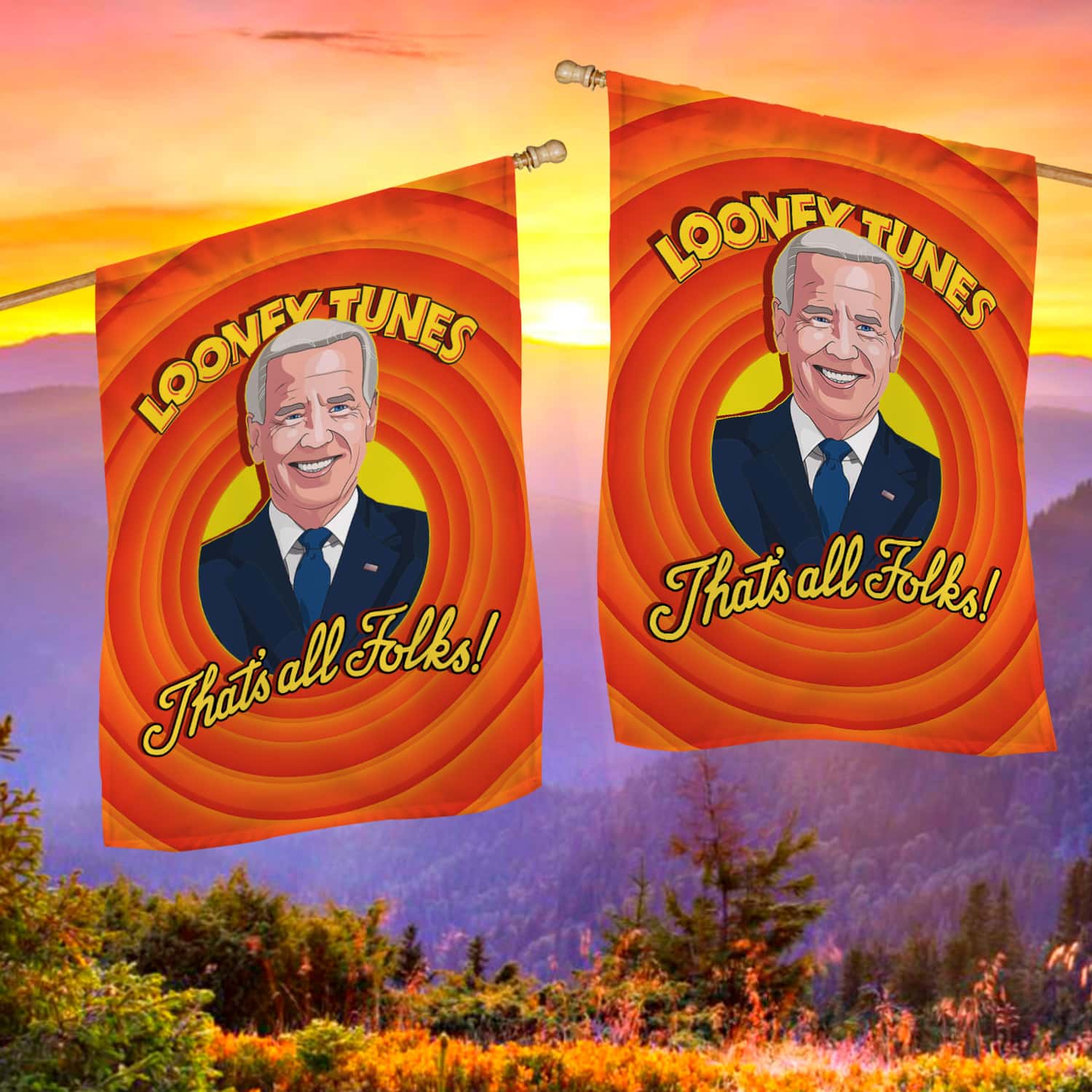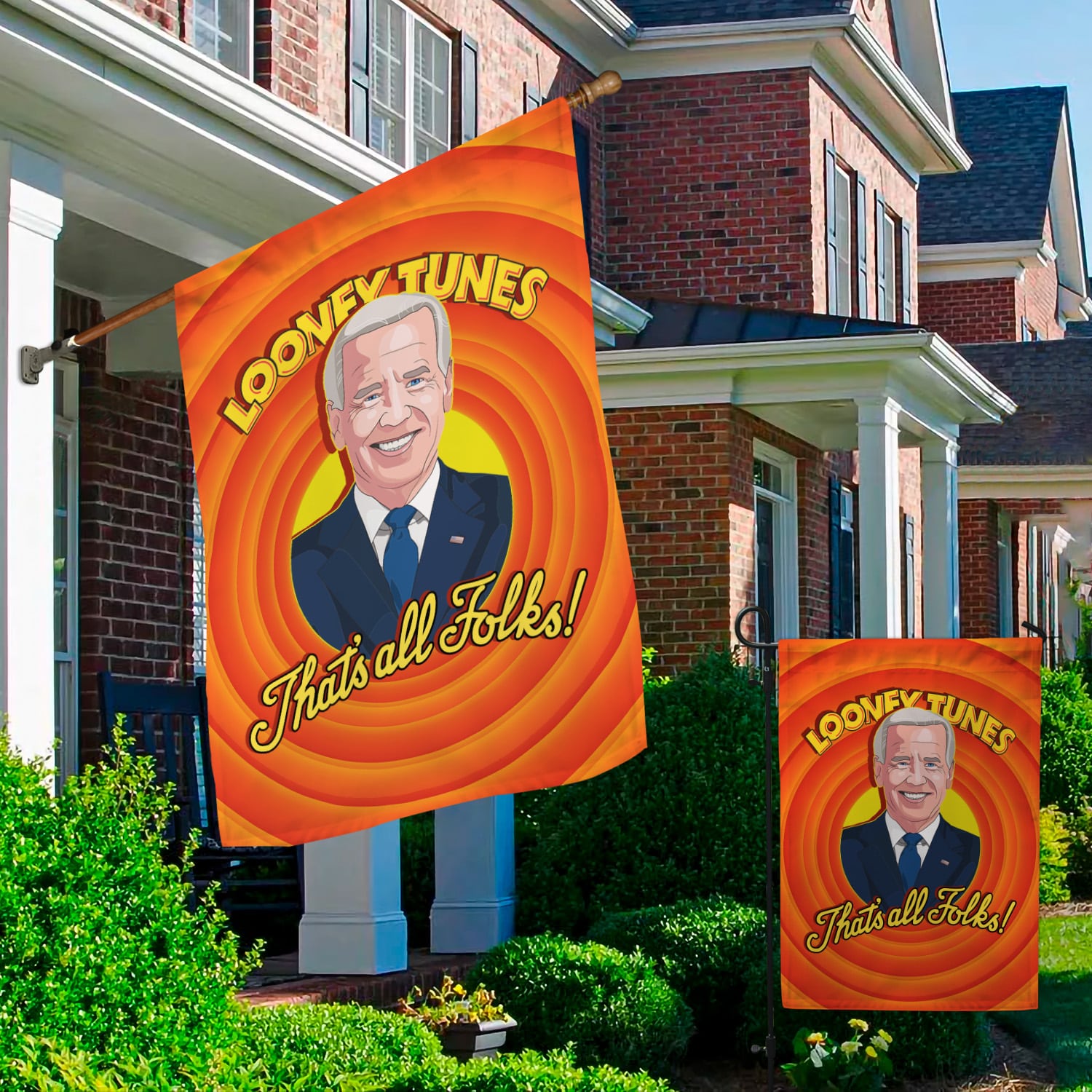 Let’s Shop Looney Tunes That’s All Folks Biden Garden Flag – House Flag – Wall Flag!