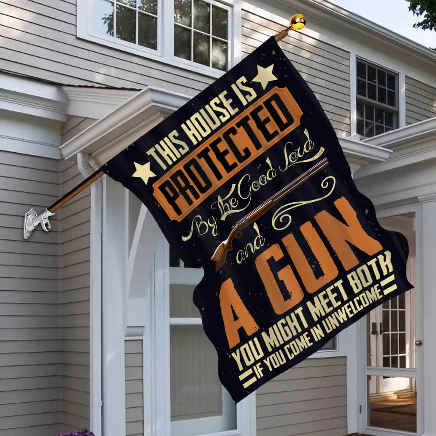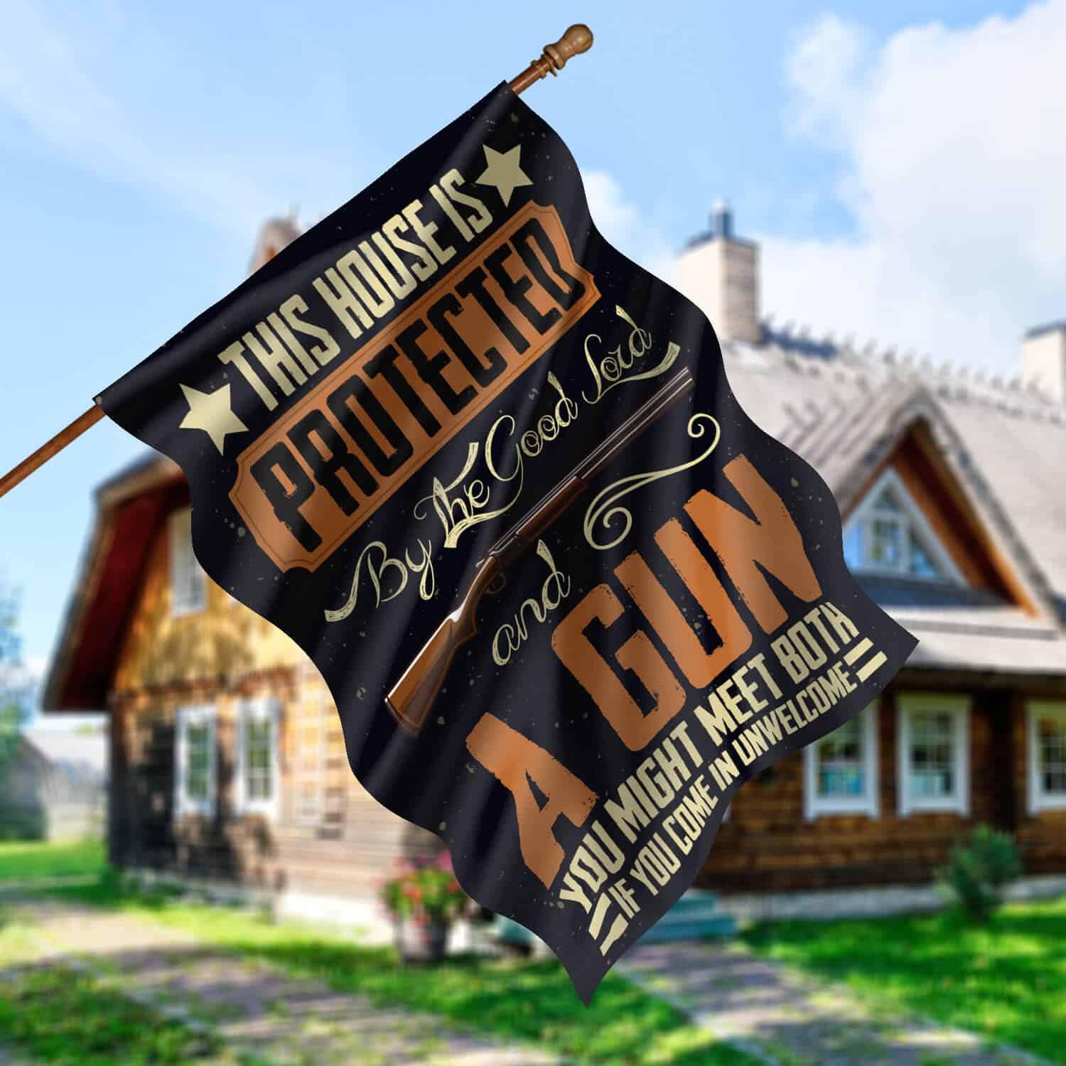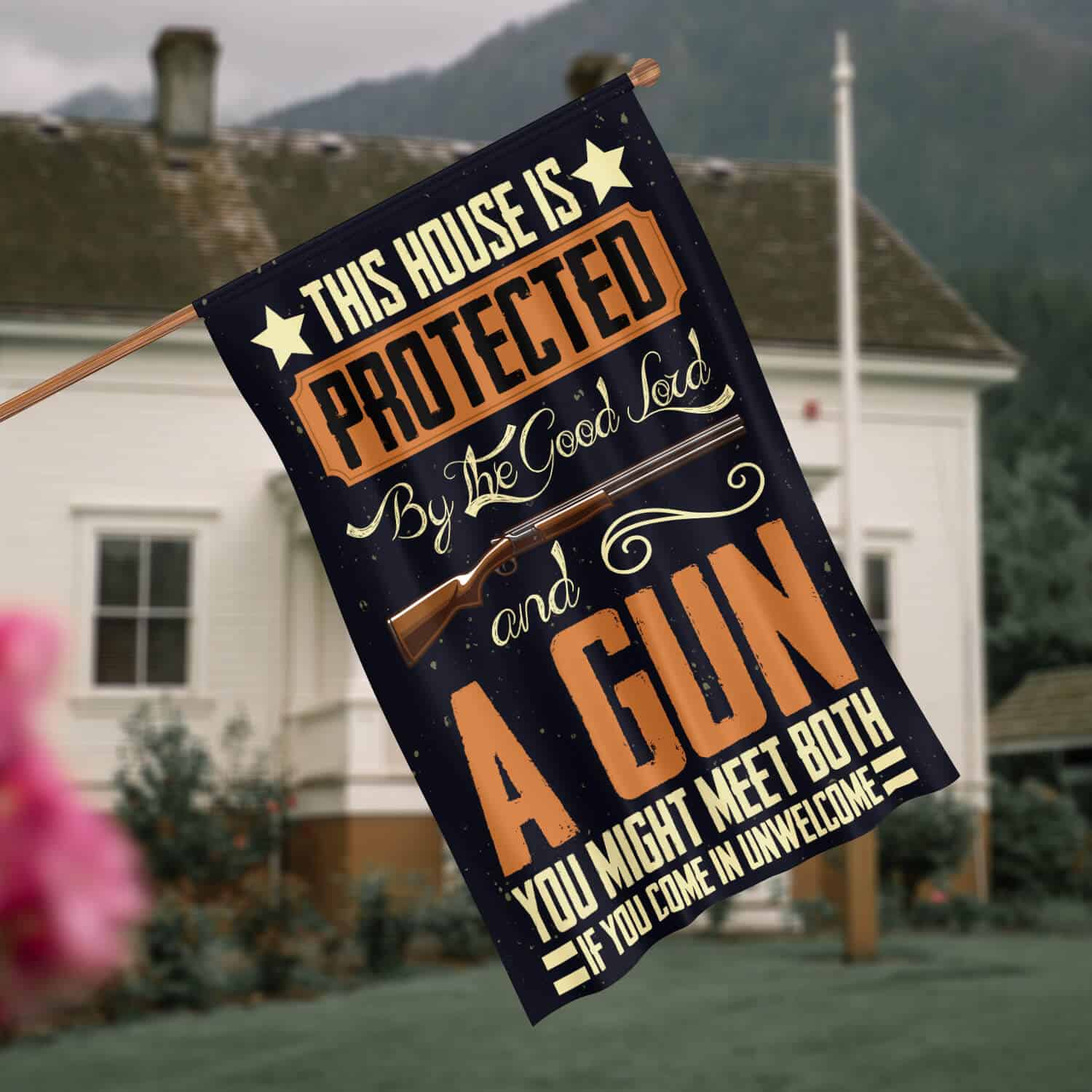 Let’s Shop This House Is Protected By The Good Lord And A Gun Flag – Gun Warning Garden Flag – House Flag – Wall Flag!