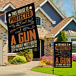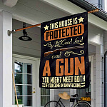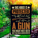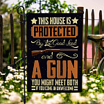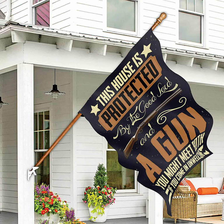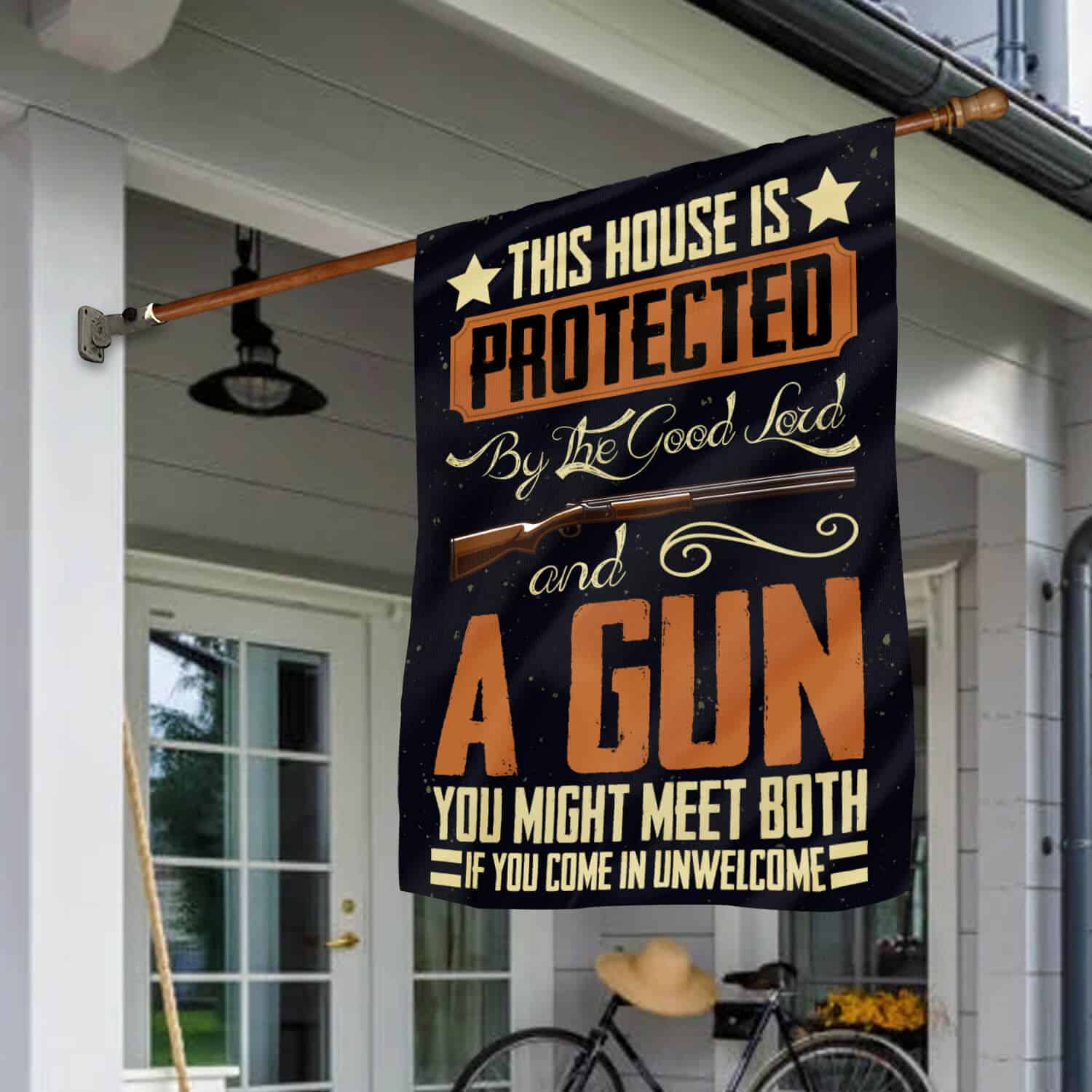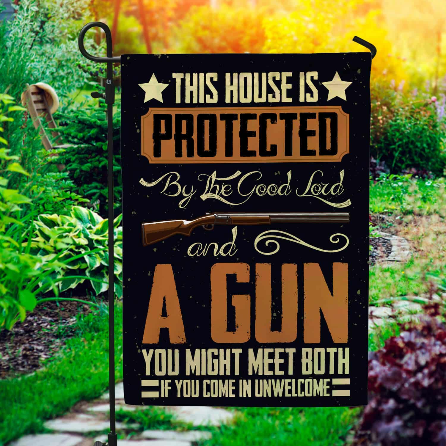 Let’s Shop This House Is Protected By The Good Lord And A Gun Flag – Gun Warning Garden Flag – House Flag – Wall Flag!