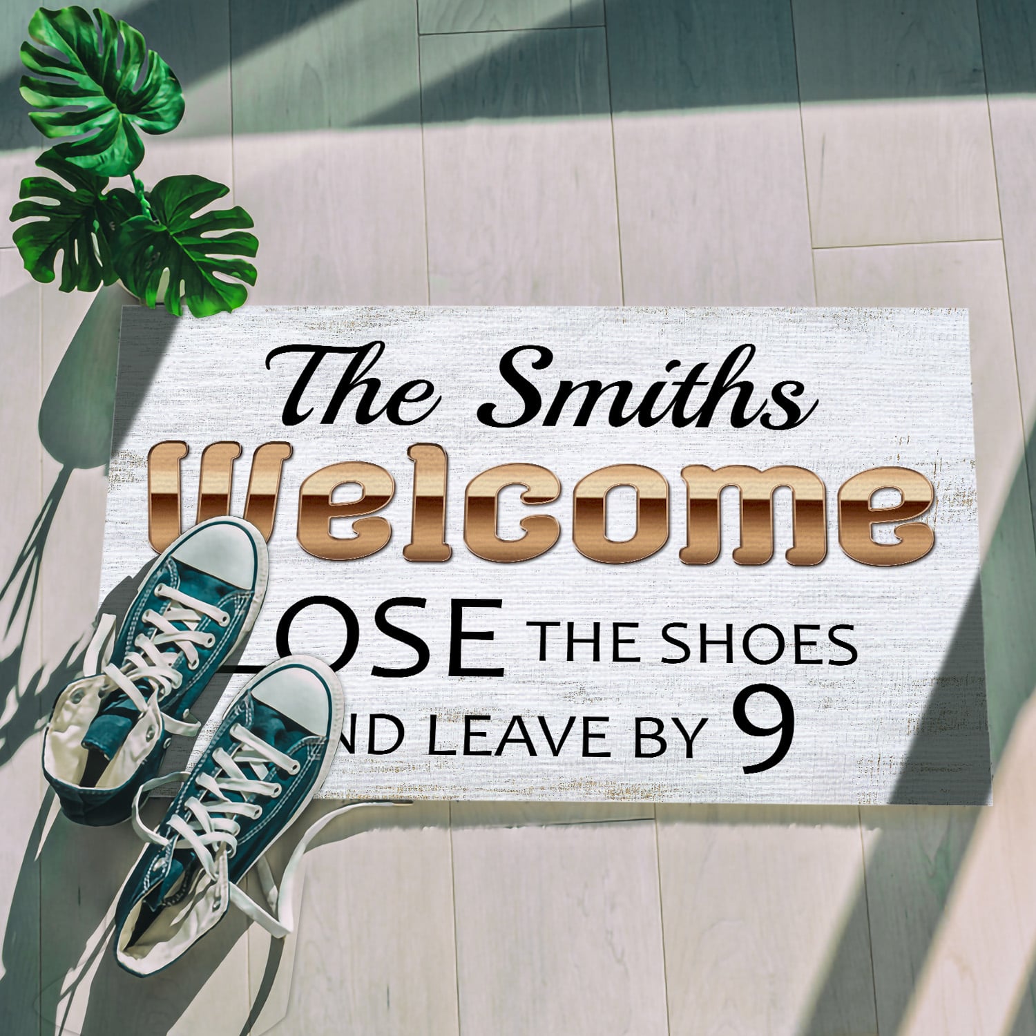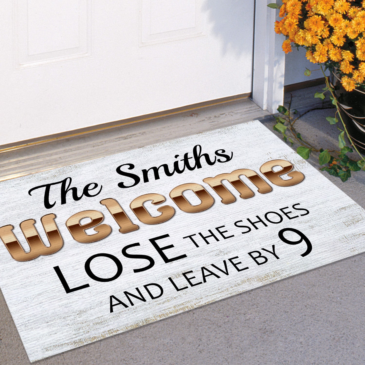 Let’s Shop Personalized Custom Name Welcome Lose The Shoes And Leave By 9 Indoor Outdoor Doormat!