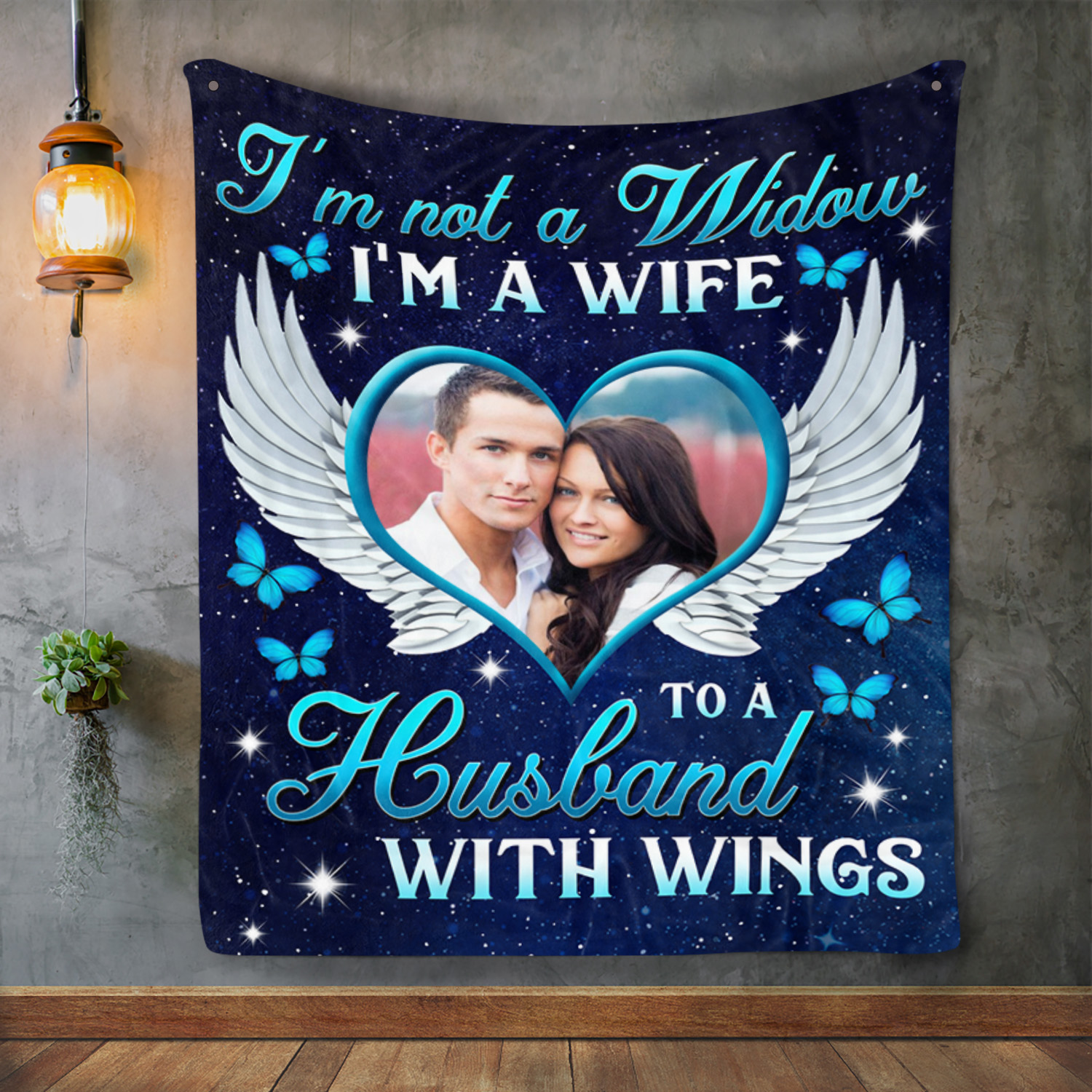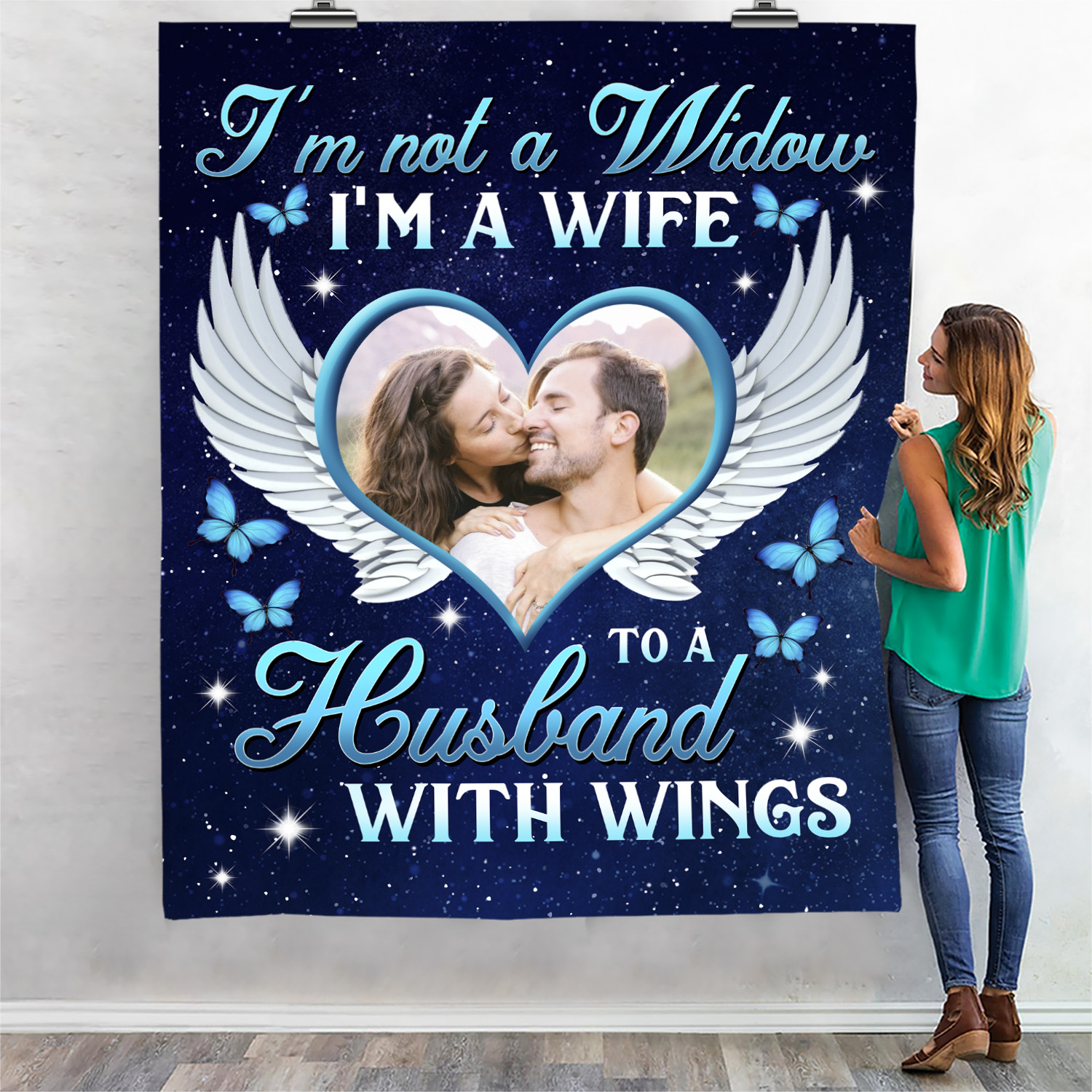 Let’s Shop Personalized Photo I’m Not A Widow I’m A Wife To A Husband With Wings Fleece Blanket – Sherpa Blanket!