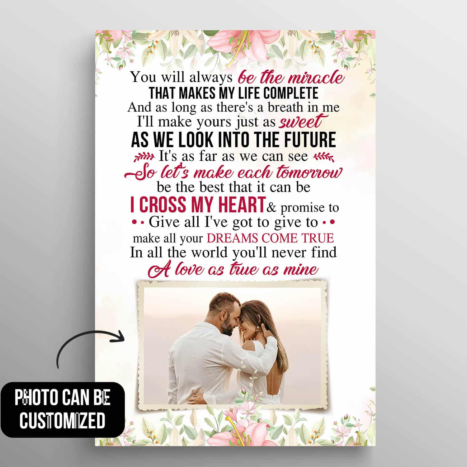 Let’s Shop You Will Always Be the Miracle that Makes My Life Complete Personalized Photo Framed Canvas – Unframed Poster!