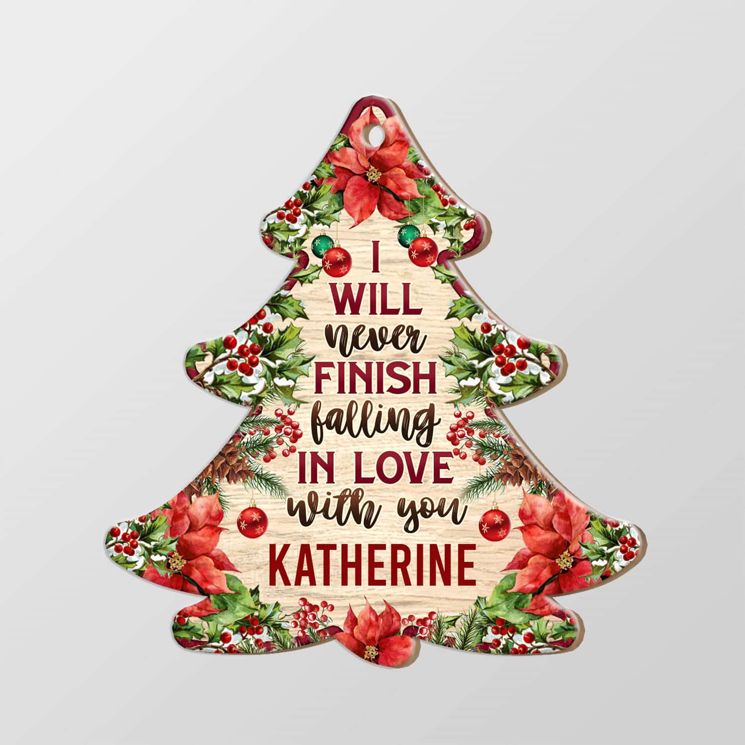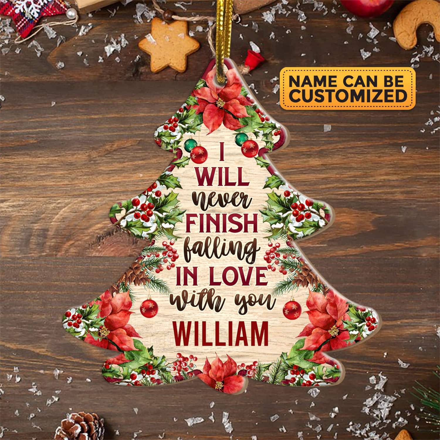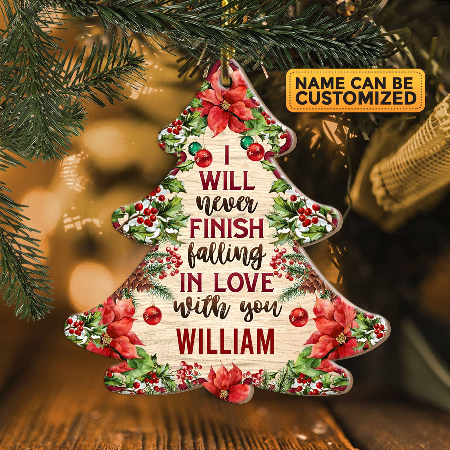 Let’s Shop Personalized I Will Never Finish Falling In Love With You Custom Shaped Wooden Christmas Ornament Keepsake!