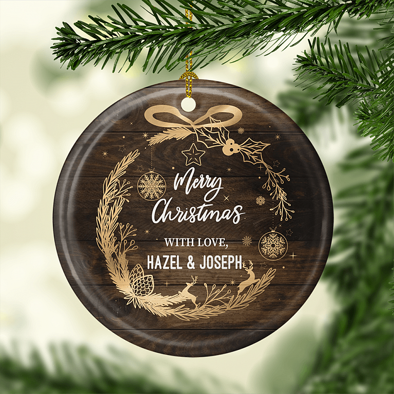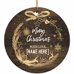 Shop Merry Christmas With Love Personalized Decorative Christmas Ornament Keepsake – Holiday Flat Circle Porcelain Ceramic Ornament.