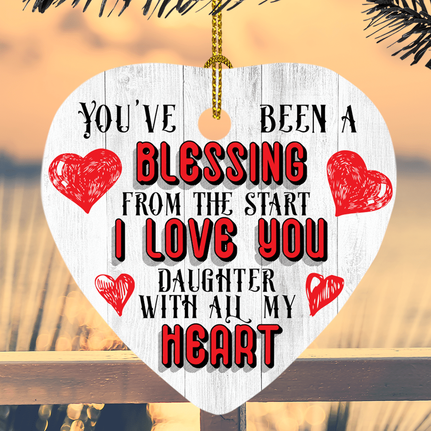 Let’s Shop I Love You Daughter WIth All My Heart Decorative Christmas Ornament – Holiday Flat Heart Ornament!