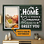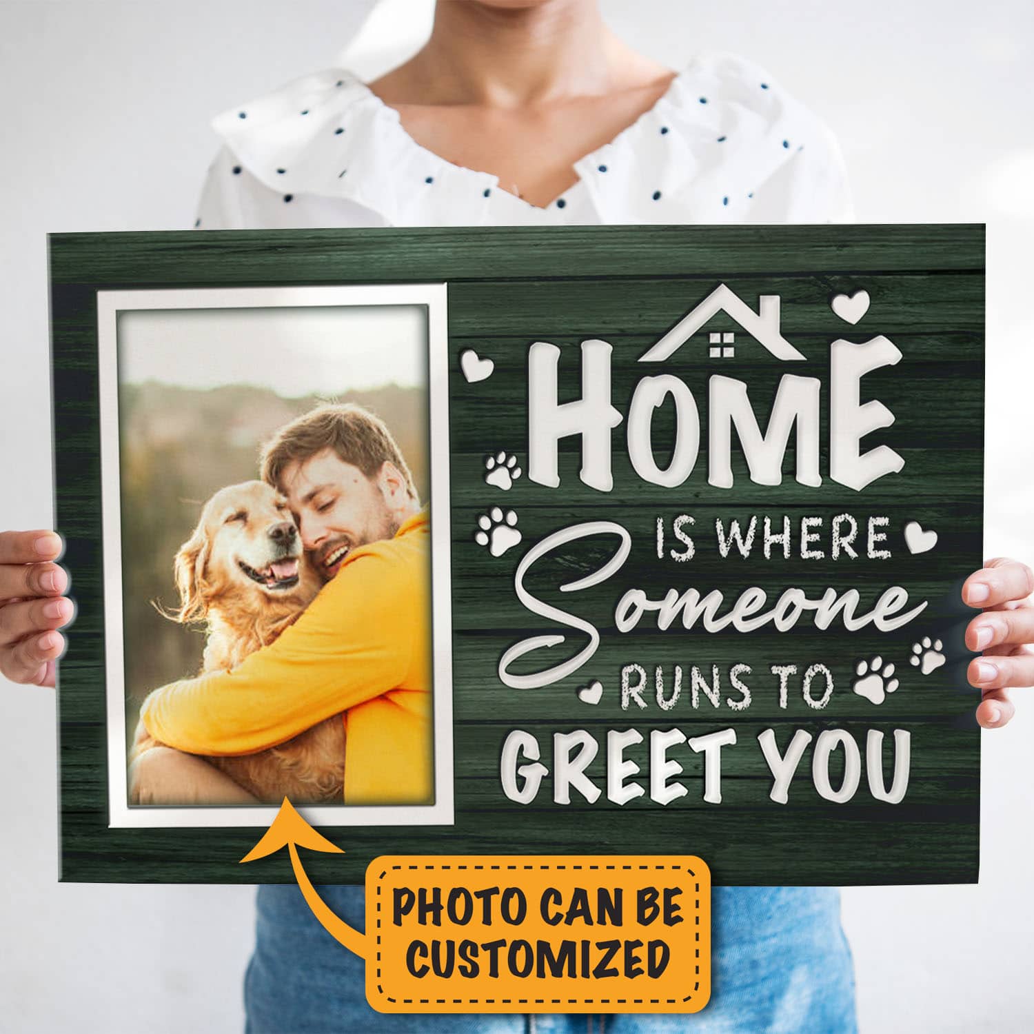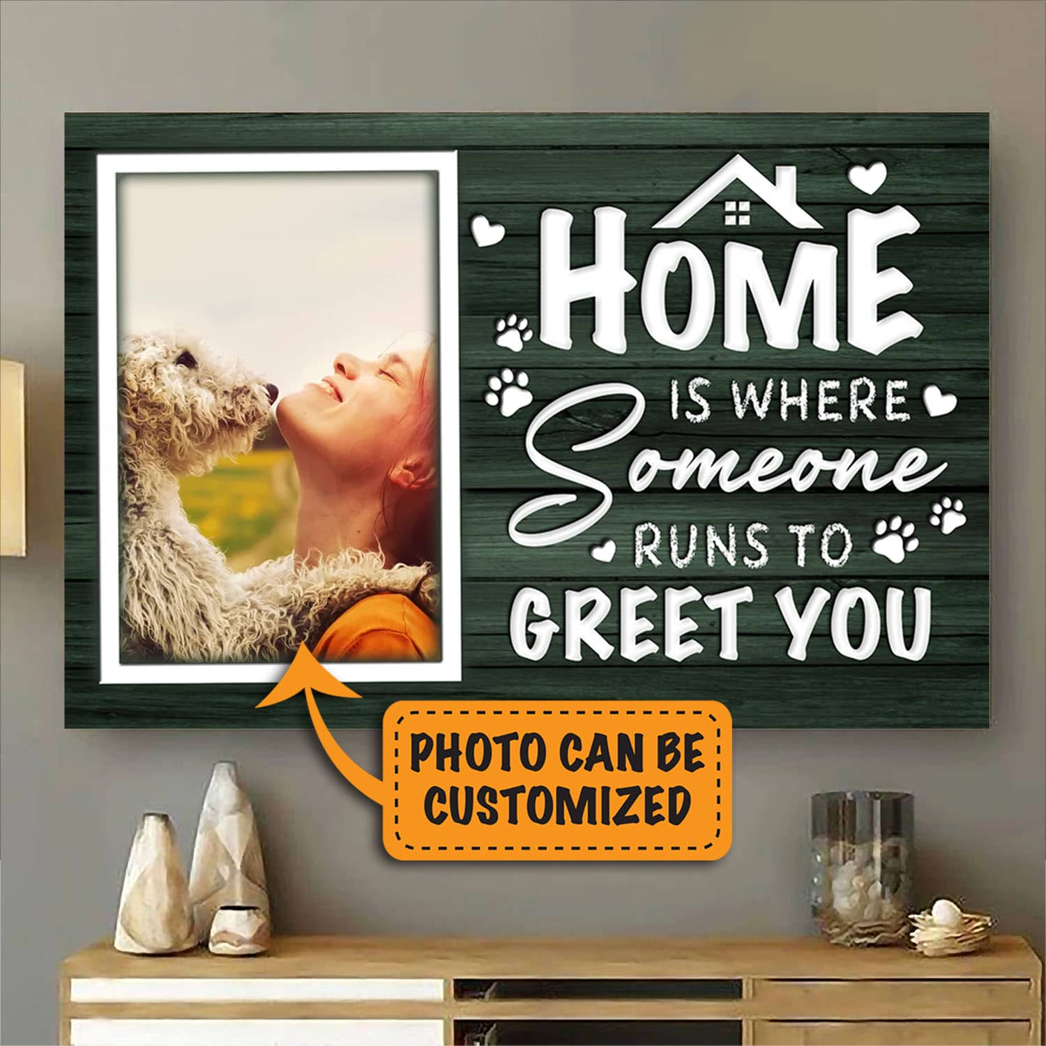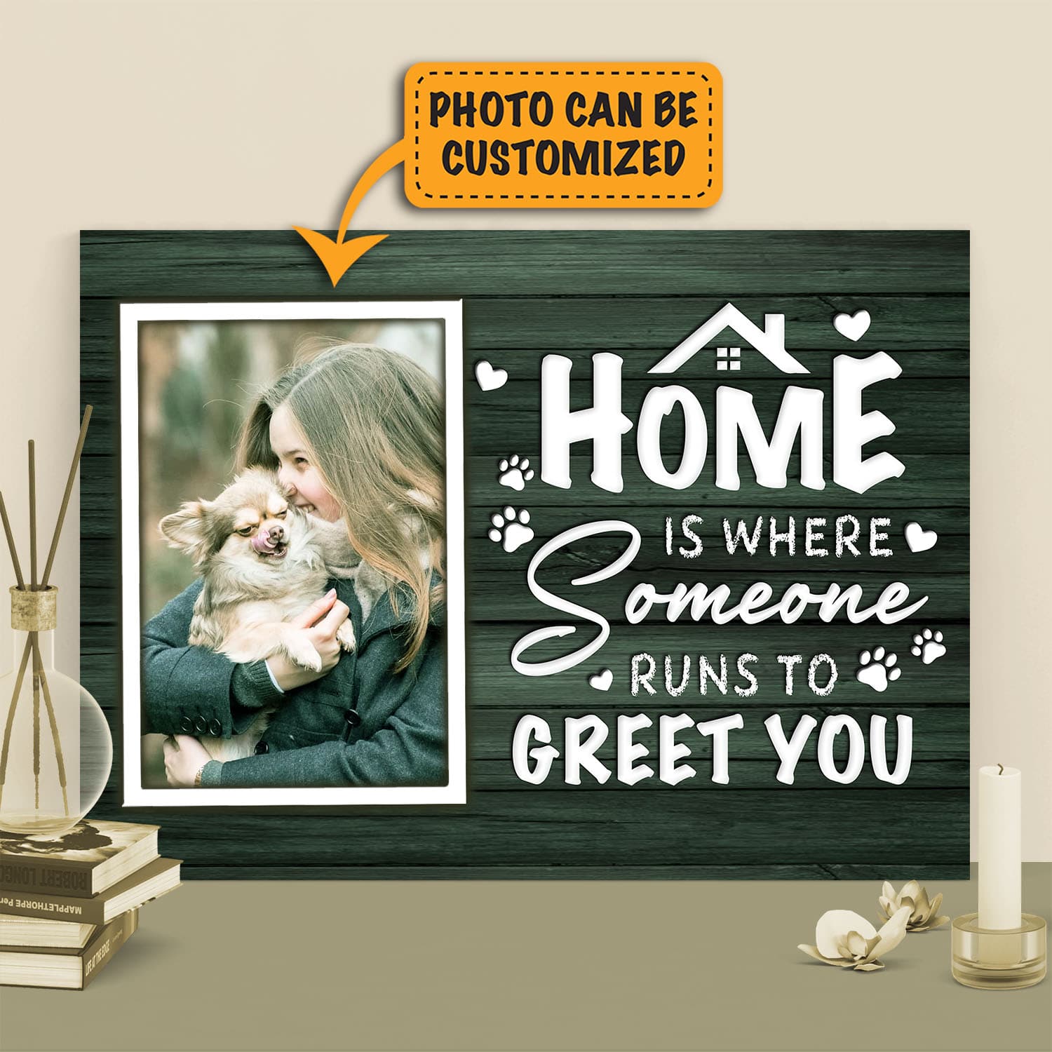 Let’s Shop Custom Photo Home Is Where Someone Runs To Greet You Framed Canvas – Unframed Poster – Cute Dog Gift!