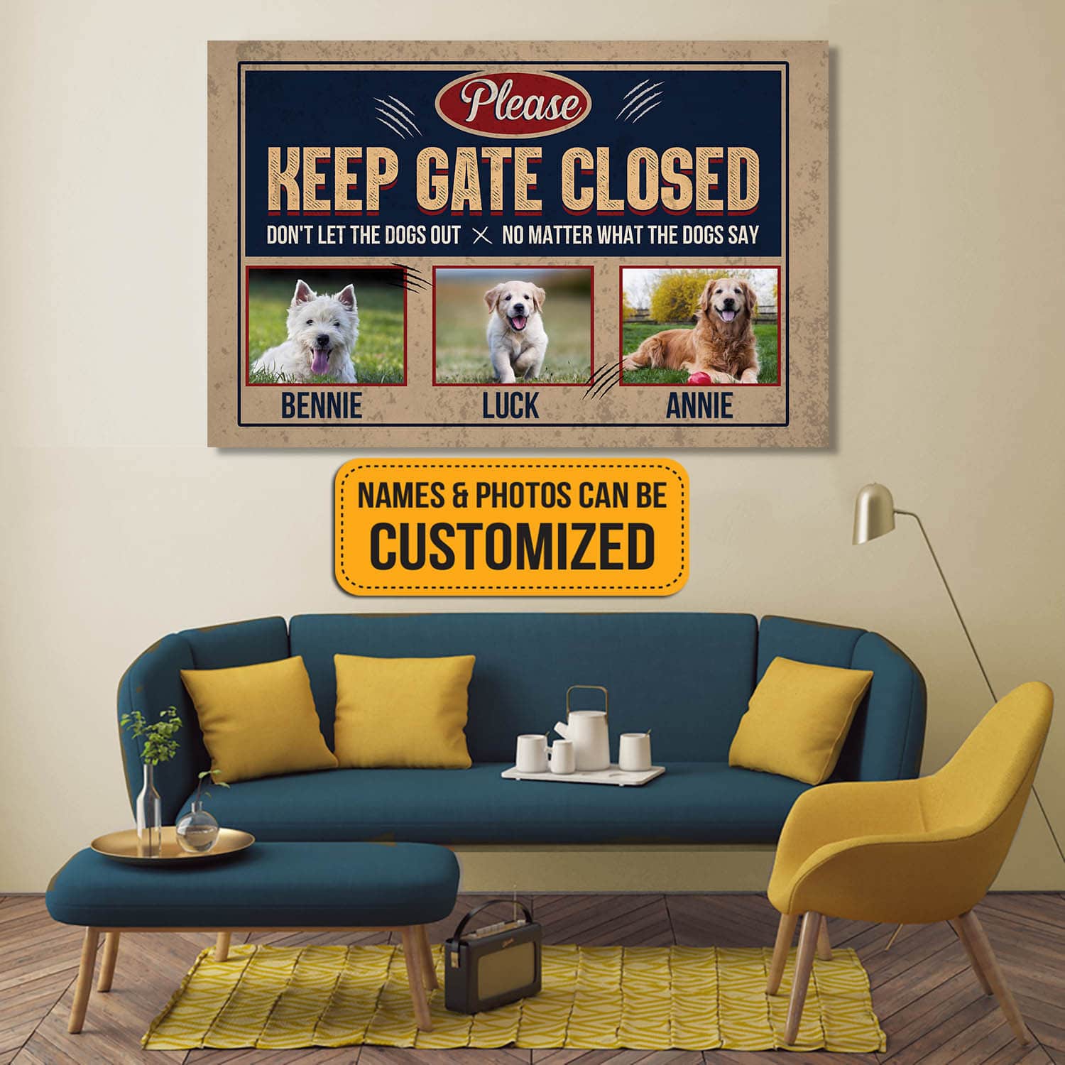 Let’s Shop Custom Photo Keep Gate Closed Don’t Led Dogs Out Framed Canvas – Unframed Poster – Funny Love Dog Home Decor!