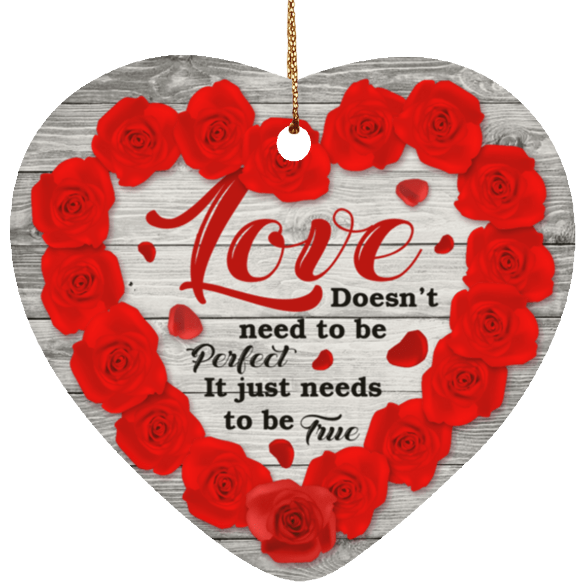 Love Doesn’t Need To Be Perfect Red Rose Decorative Christmas Flat Heart Porcelain Ceramic Ornament Keepsake